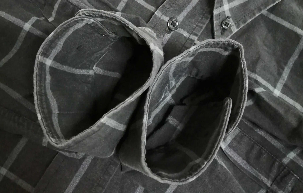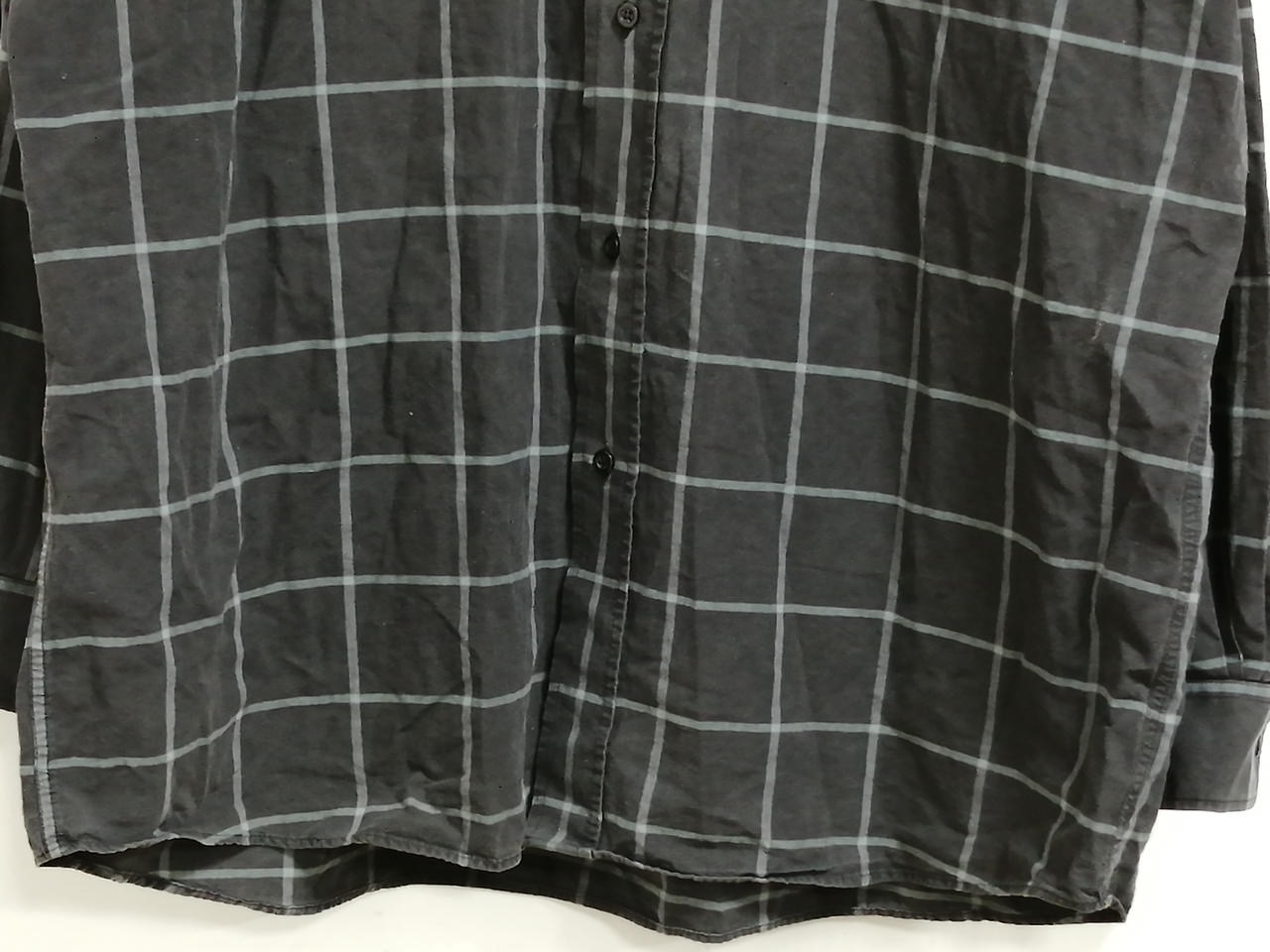 袖のボタンが欠損していて襟や身頃など各所汚れがございます。 |