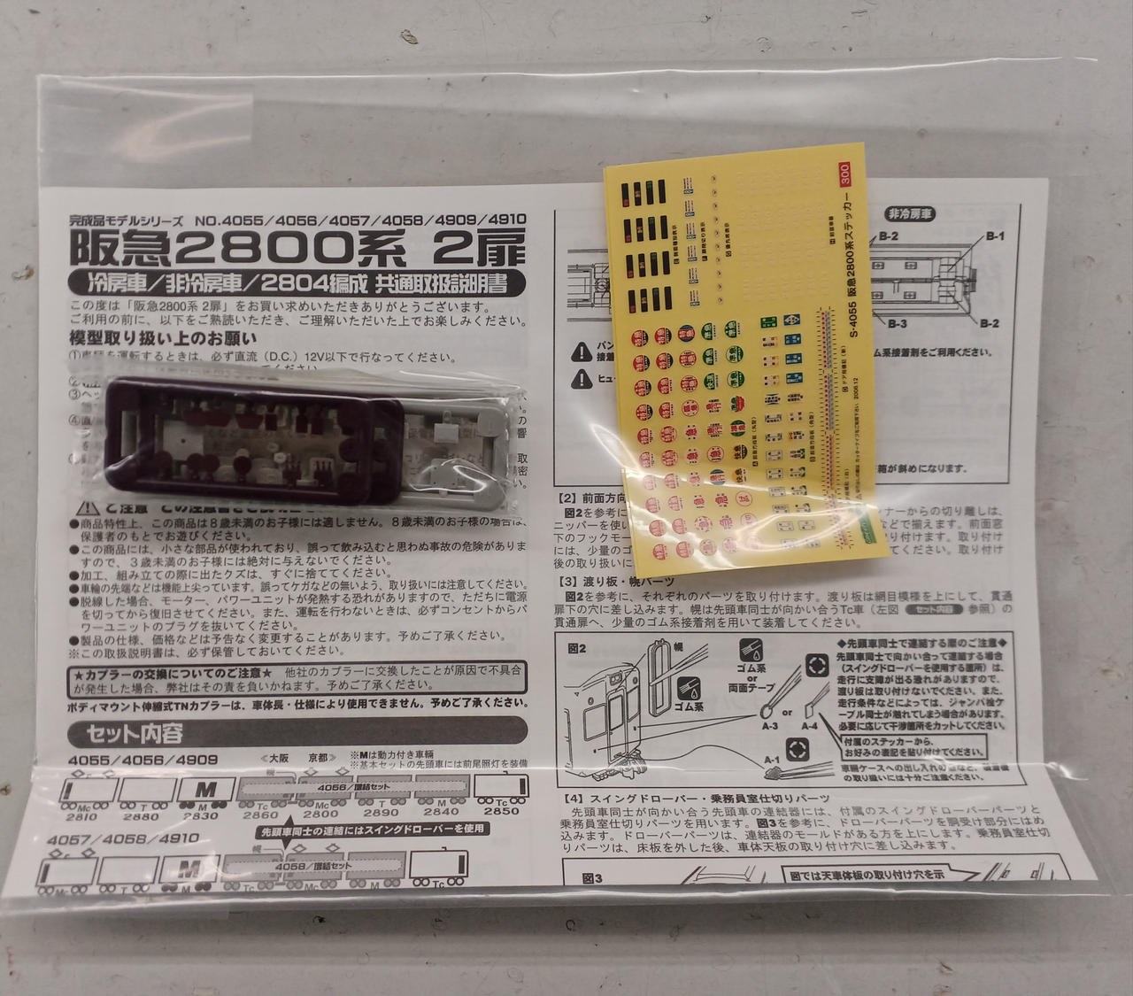 説明書、ステッカー2枚、幌パーツ1点、乗務員室仕切り2点、カプラー2点 |