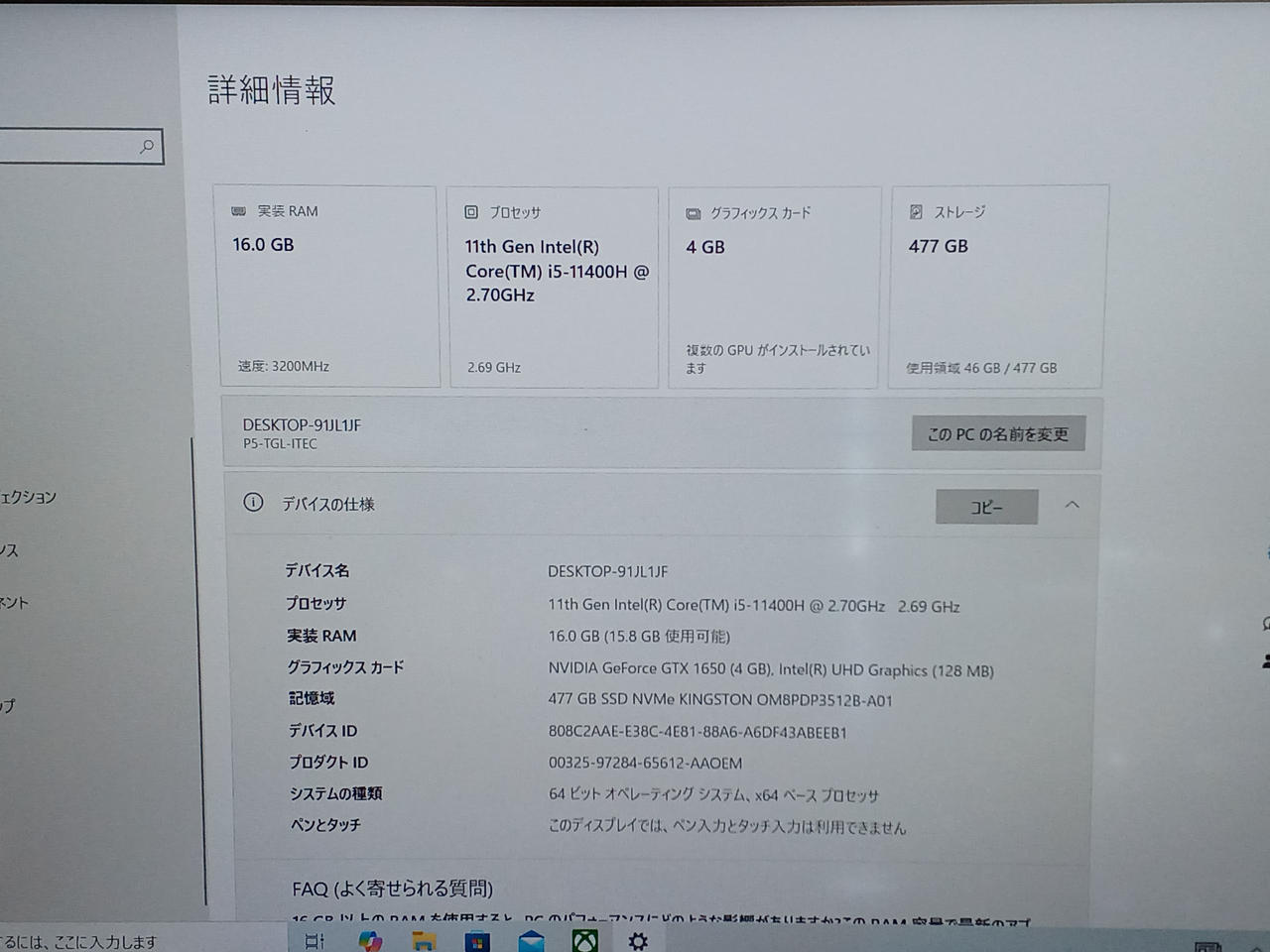 ゲーミングノートPC(WINDOWS 10 HOME)