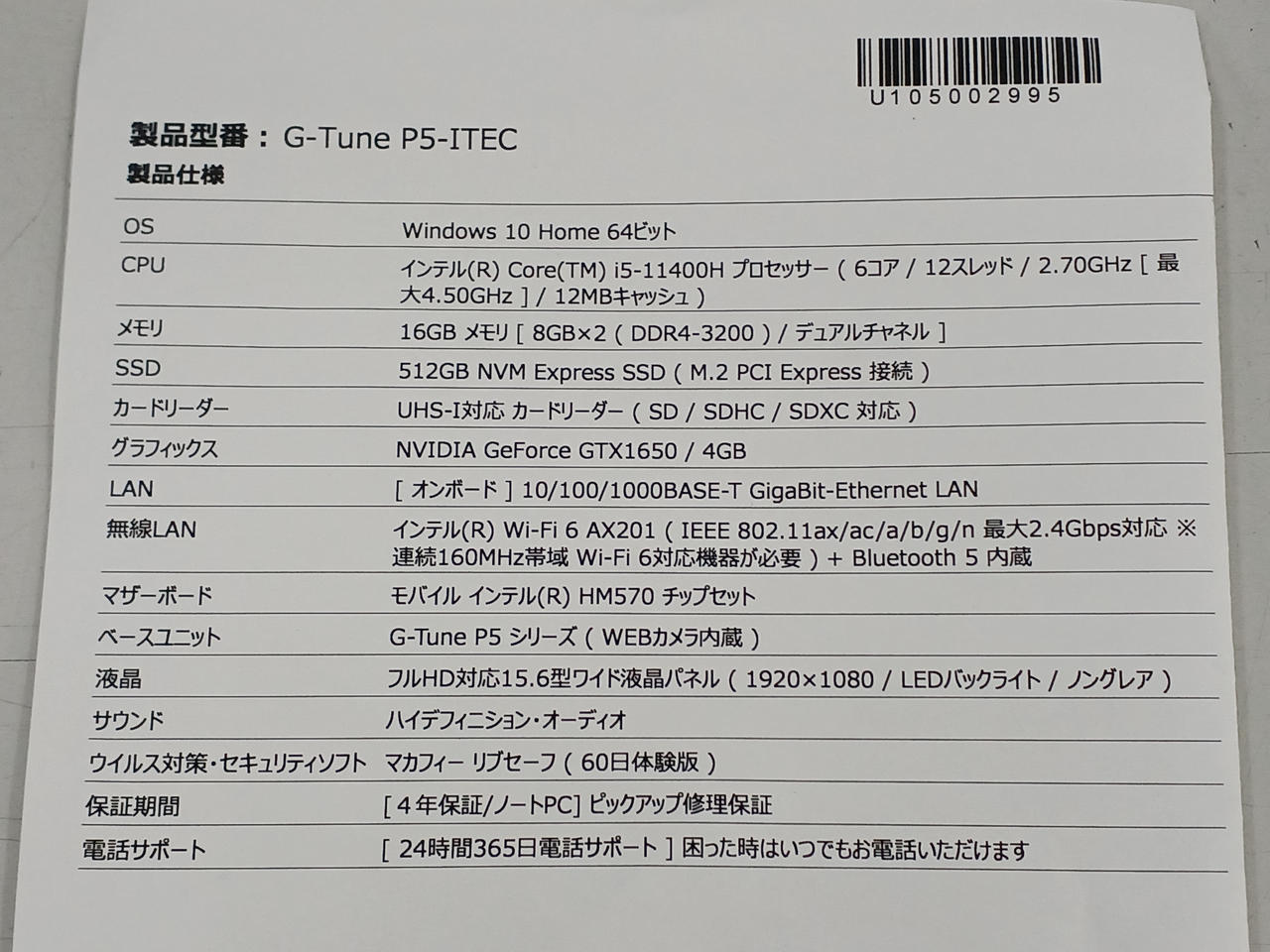 型番:G-TUNE P5-ITEC