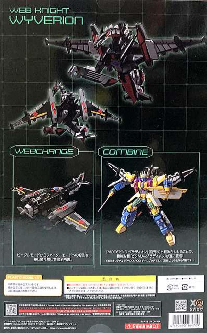 そして別売りの「MODEROID グラディオン」と組み合わせることで、最強形態「ビクトリーグラディオン」が遂に完成!劇中の合体機構を完全再現し、合体状態でもグラディオンの関節可動を活かした各種ポージングが可能です。 |