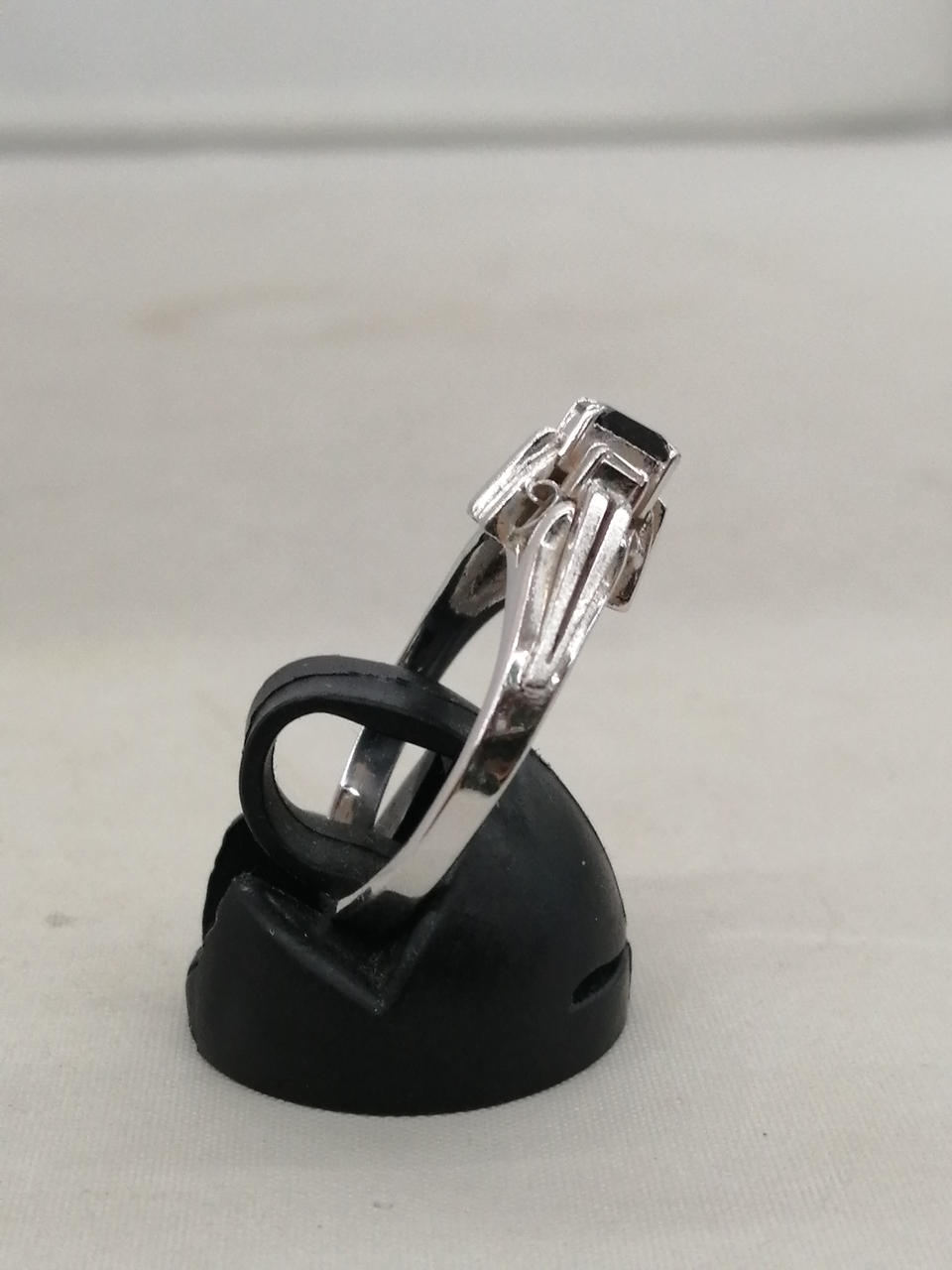 黒の宝石がポイントのシンプルなリングです