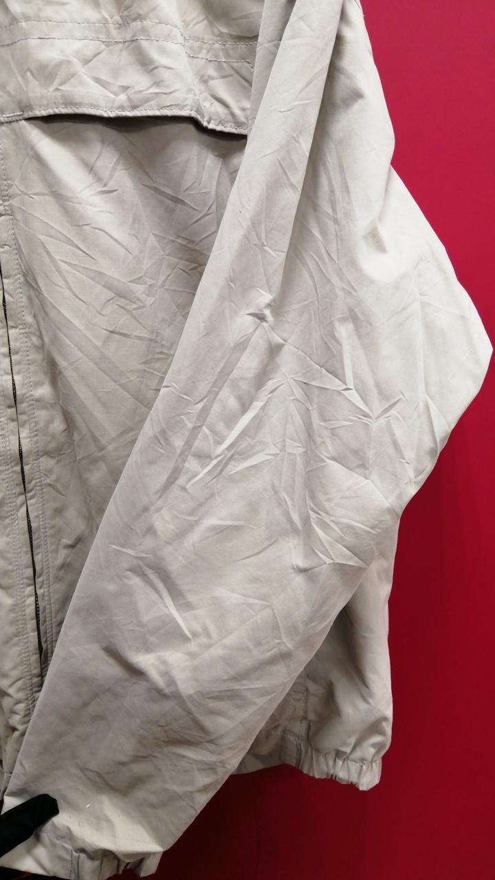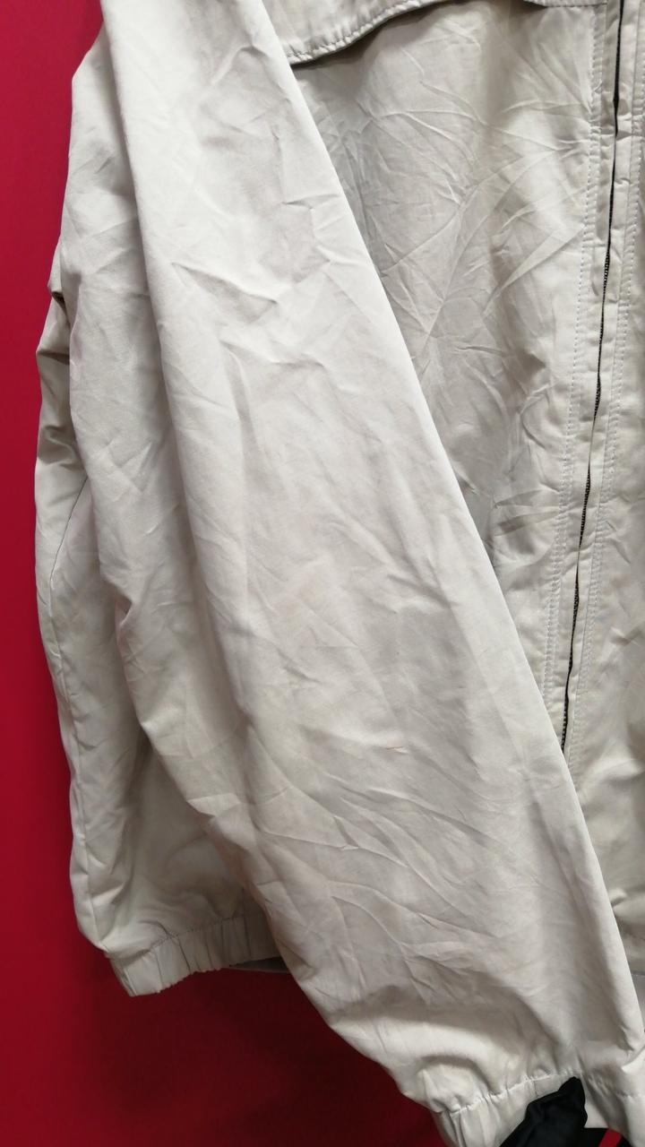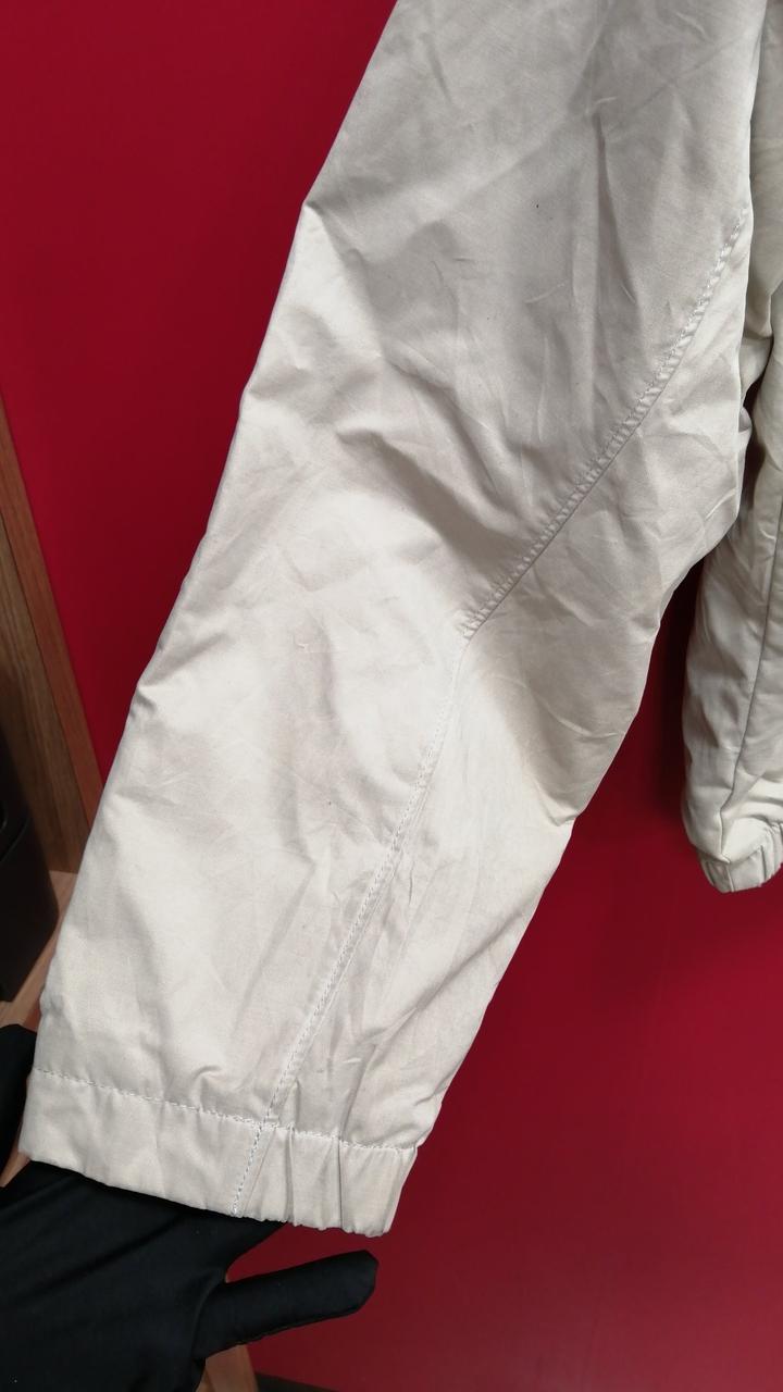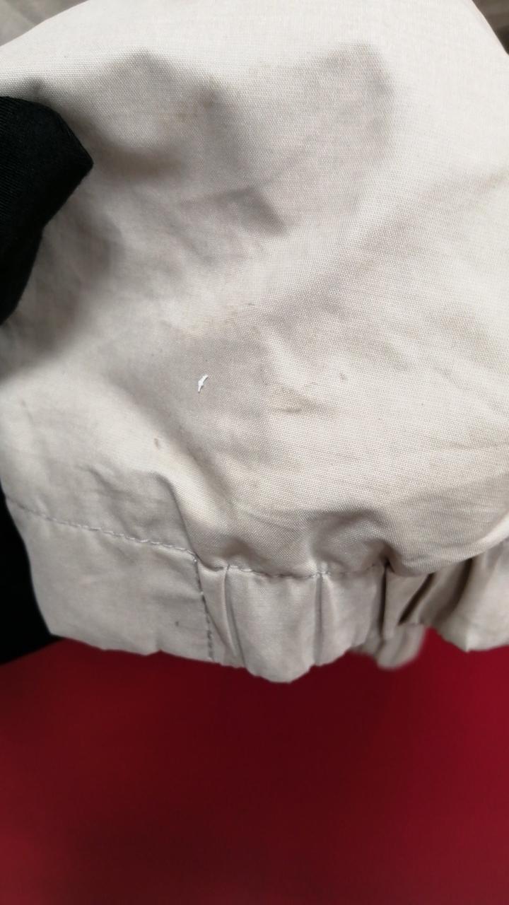 袖口にシミあり。使用感がございますがまだまだお使いいただけます。