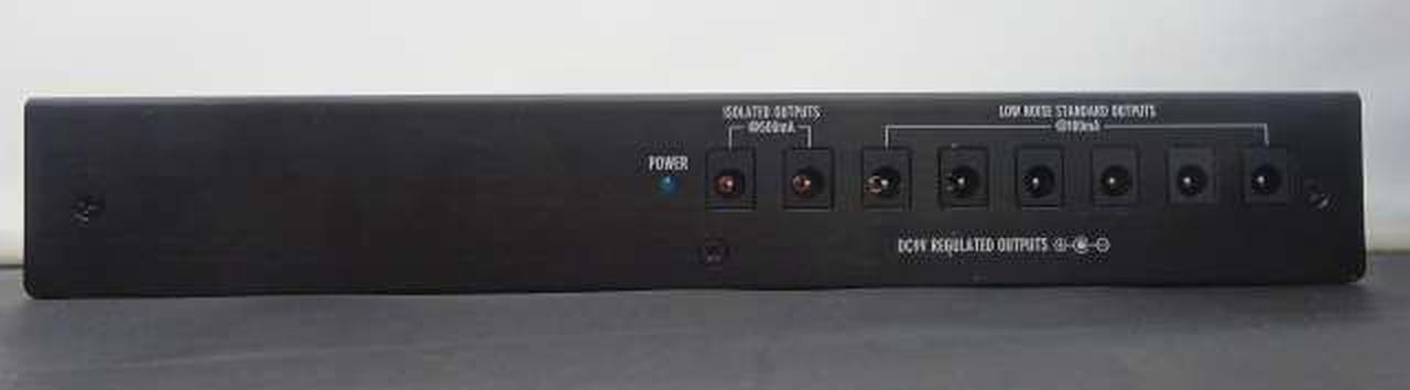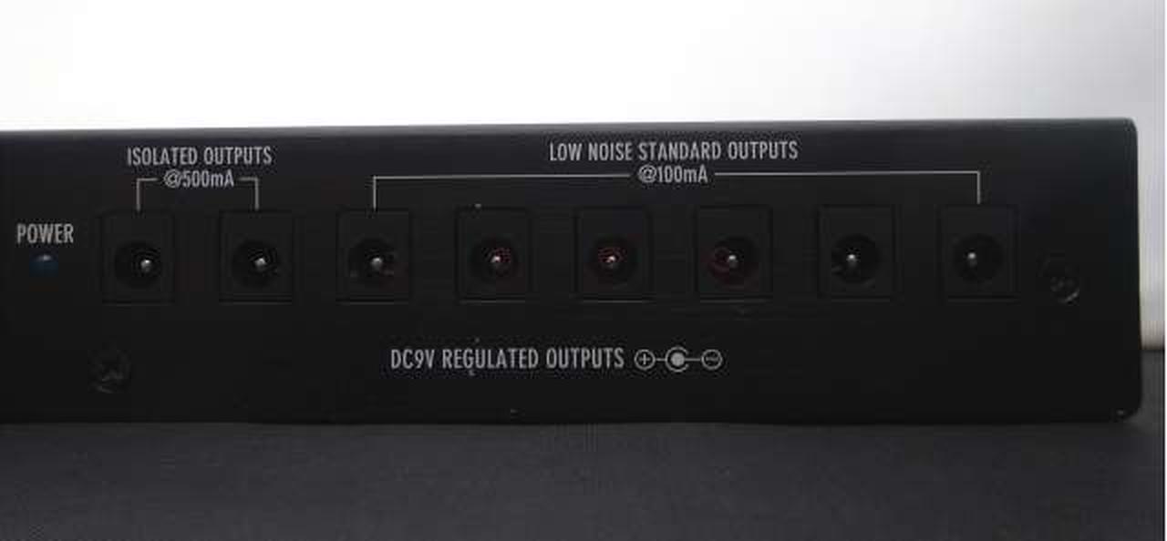 コンパクトサイズながら、3系統のAC100V供給口と完全に独立したアイソレーテッド出力端子(DC9V/500mA出力×2)とローノイズ・スタンダード出力端子を装備 |