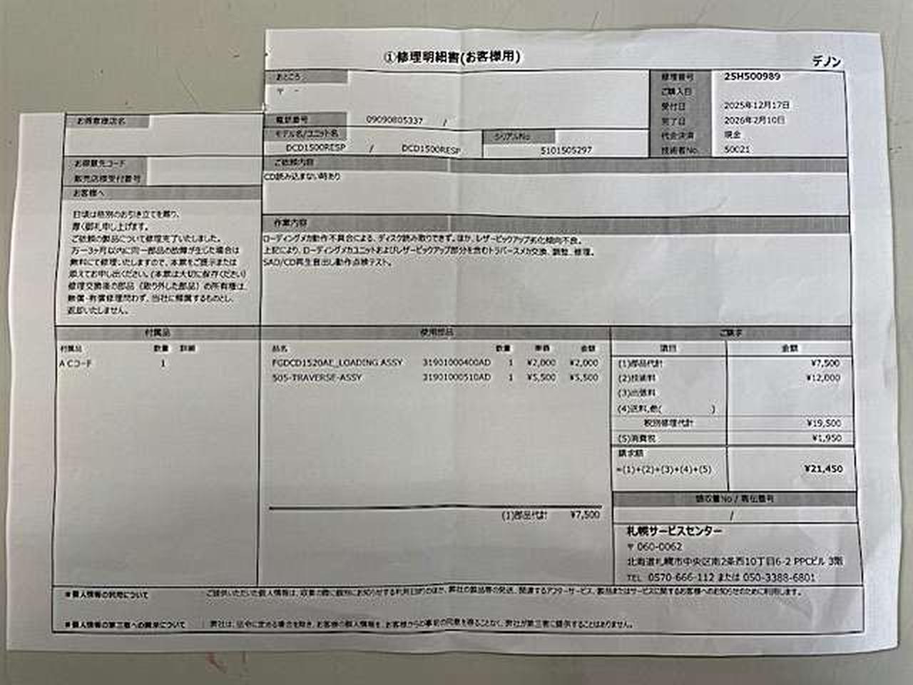 TEL:011-827-7422| 保証期間 | 3ヶ月保証 |