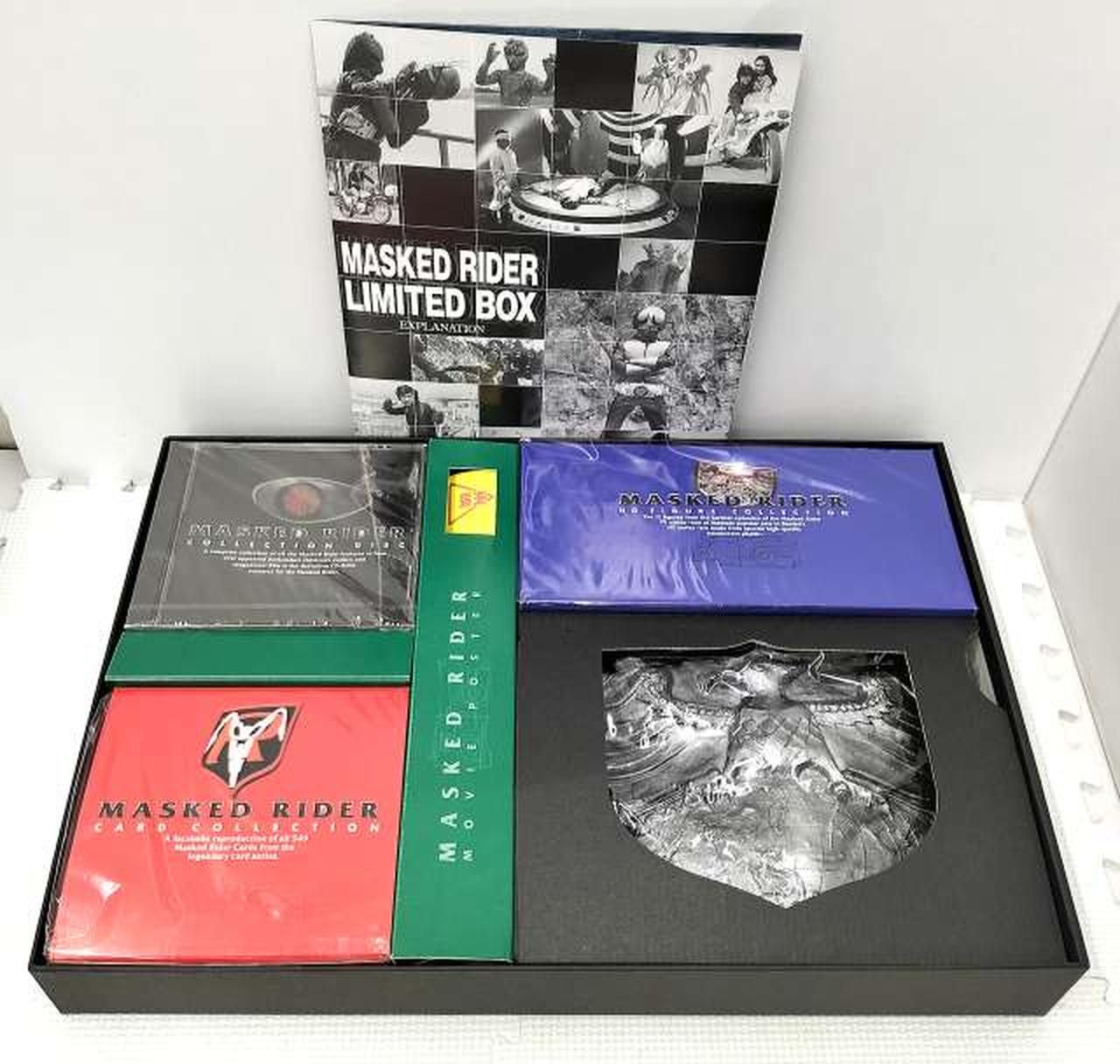 ①カルビー「仮面ライダーカード」全546枚セット / ②バンダイHGシリーズ スペシャルセット / ③CD-ROM「仮面ライダー」ライブラリー / ④オリジナルレプリカ ショッカーバックル / ⑤石ノ森章太郎「仮面ライダー」復刻原稿 / ⑥完全復刻版『テレビマガジン増刊 仮面ライダー大百科号』 / ⑦映画『ゴーゴー仮面ライダー』復刻ポスター |