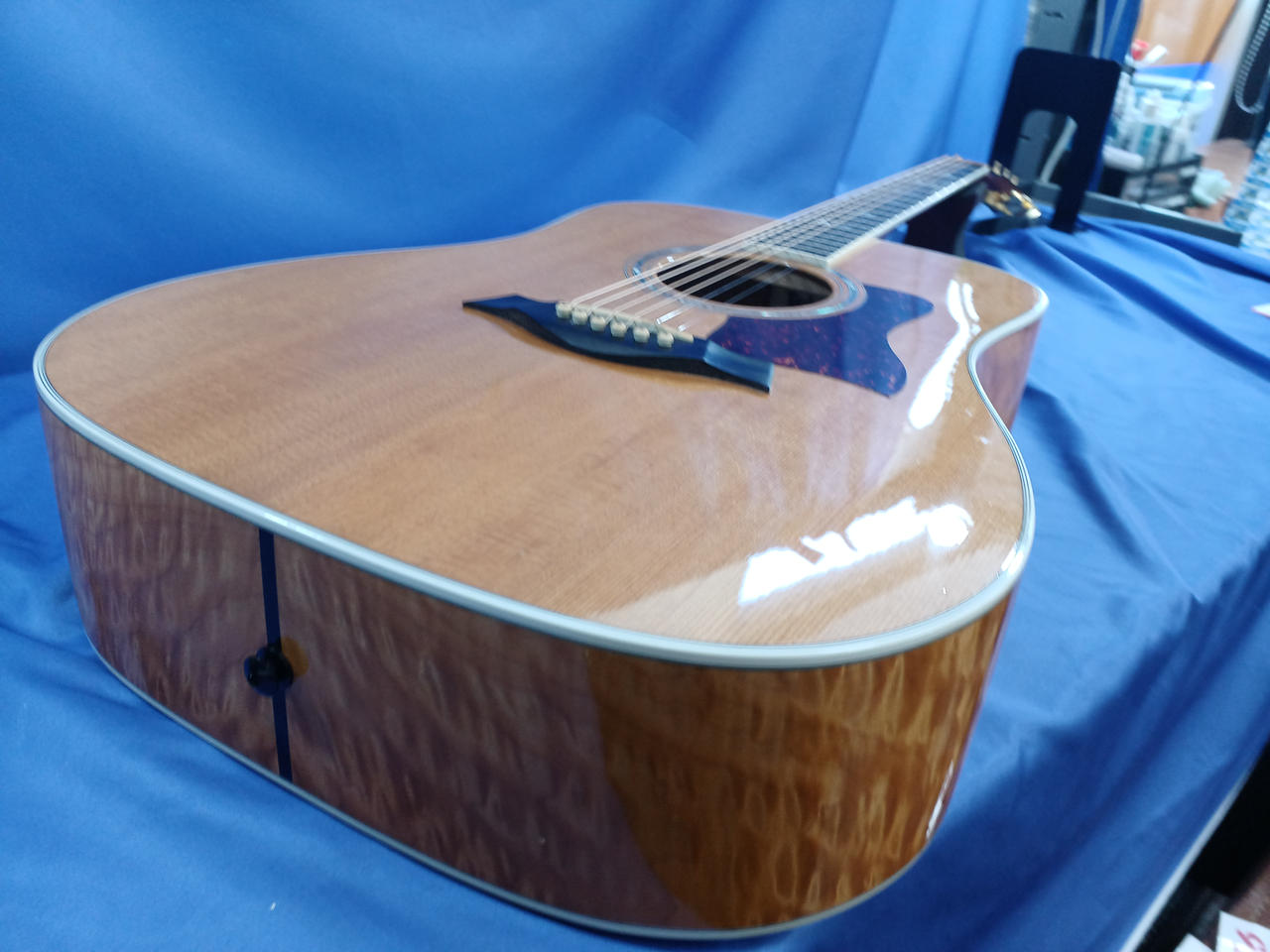 現在は、ES搭載によりエレアコとしての印象が強いテイラーですが、当時は当モデルのように純然たるドレッドノート・タイプの逸品が有りました。 |