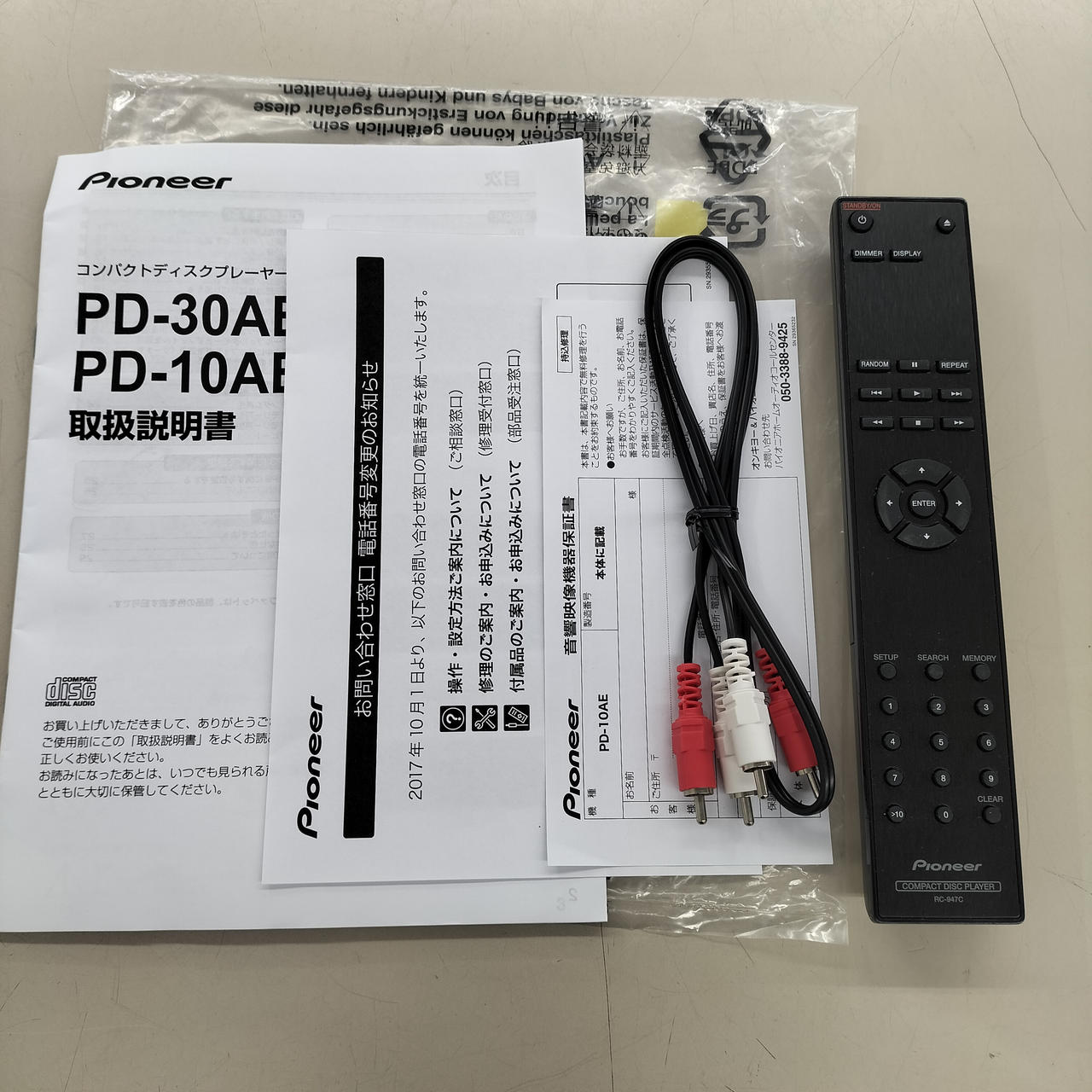 ・取扱説明書・リモコン・RCAケーブル |