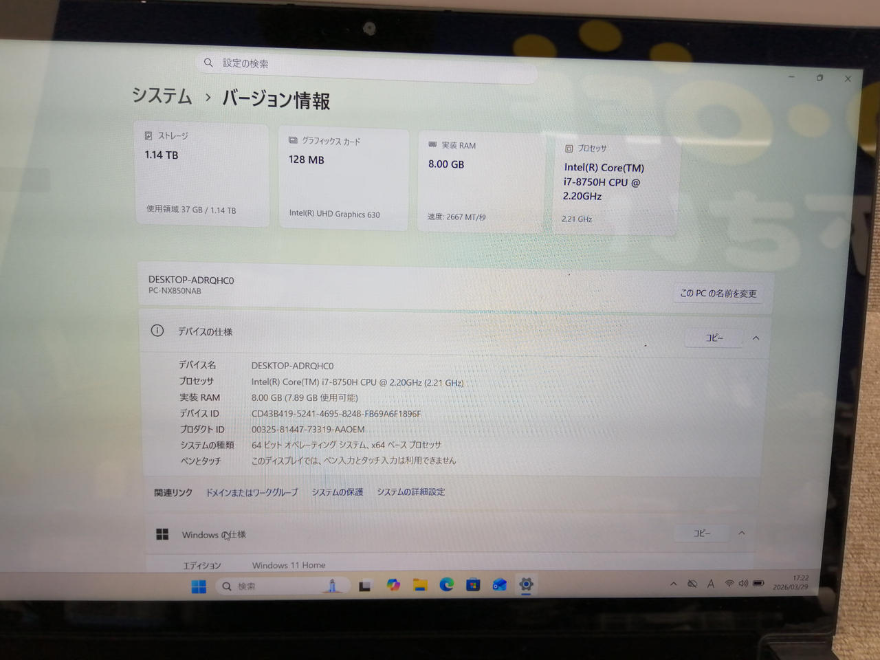 RAM:8GB ストレージ:256GB SSD/1TB HDD グラフィックス:Intel UHD Graphics 630 |