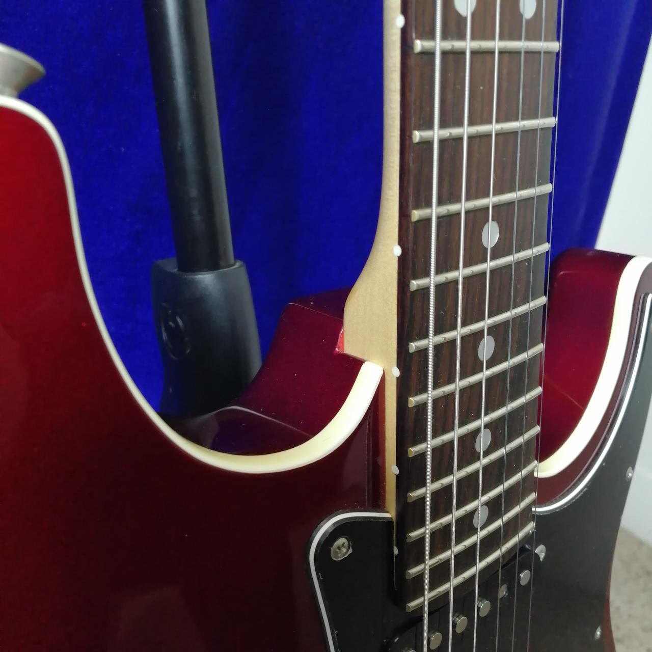 フェンダージャパンによるエアロダインストラト。マッチングヘッドにホワイトバインディングと個性的な仕様 |