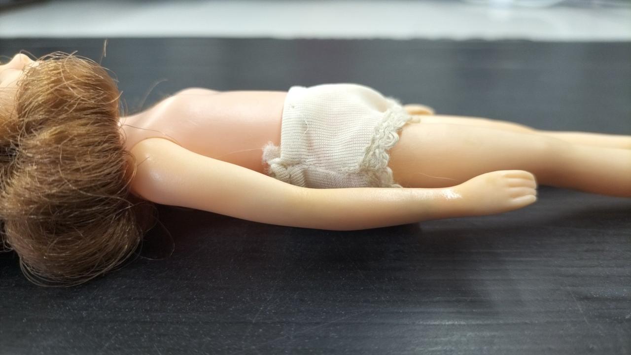 両腕、両足、手指、足指に黒ずみ汚れあり |