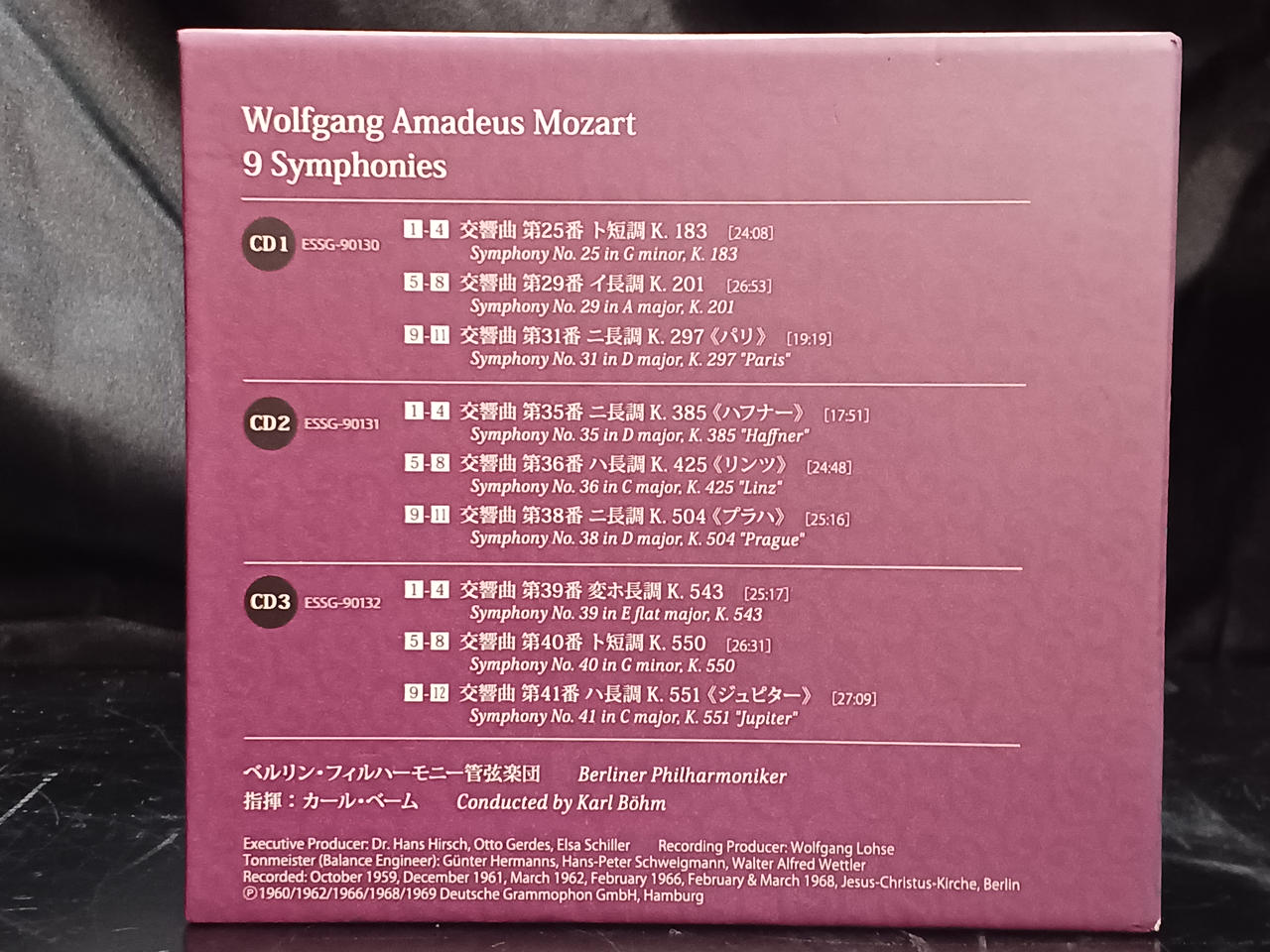 演奏: カール・ベーム指揮、ベルリン・フィルハーモニー管弦楽団3枚組 収録内容:モーツァルトの第35番~第41番など、後期三大交響曲を含む成熟期の傑作 |