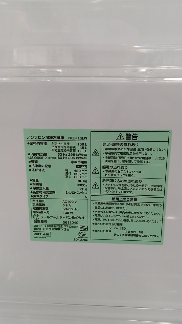 店頭受け取り商品 2023年製 総容量:156L/本体質量:40kg 形寸法:幅480×奥行き595×高さ1266mm 同時に店頭にて販売を行っている為商品となる為、写真に写っていない微細なキズ・汚れが付く場合がございます。商品ランクに影響のない場合は、掲載内容に追加などなく商品を発送いたしますのでご了承ください。また、撮影時の照明やPCの環境などにより、実際の色味と異なって見える場合や、キズ・汚れが写真に写りきらない場合がございます。 |