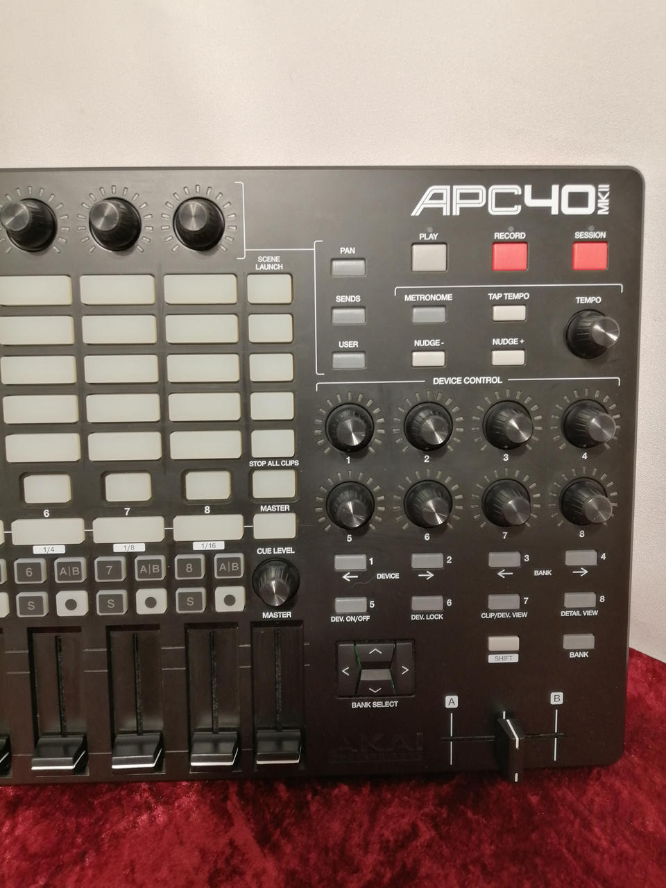 RGBカラーバックライト搭載の40(5 x 8)のクリップ・ラウンチ・マトリクスを装備。 |
