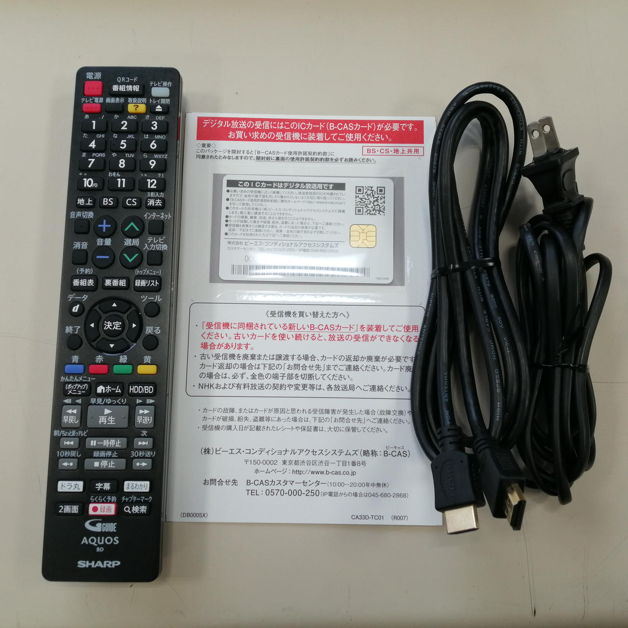 接続ケーブル・リモコン・電源ケーブル・B-CASカード |