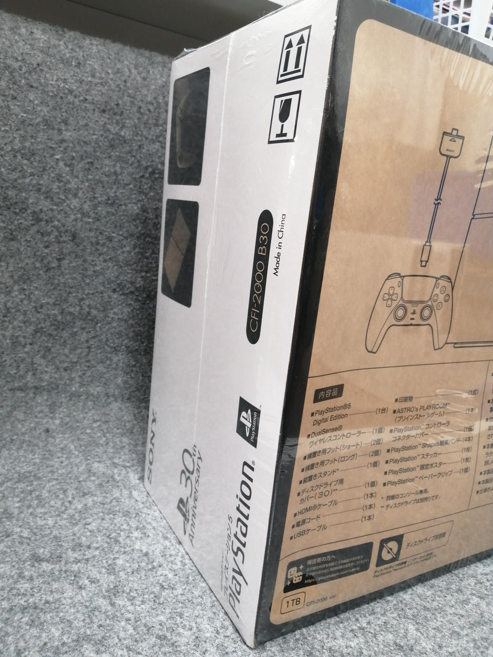 PlayStation誕生30周年を記念した、初代PlayStationの配色をあしらった特別バージョンのPlayStation 5 デジタル・エディション |