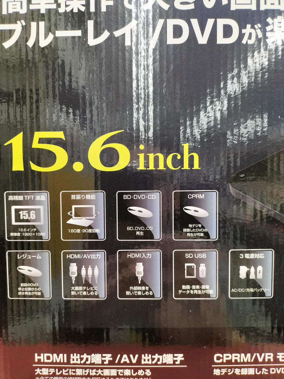 15.6インチで3電源対応!家庭用コンセント、車載用DC電源、さらに充電バッテリー搭載 |