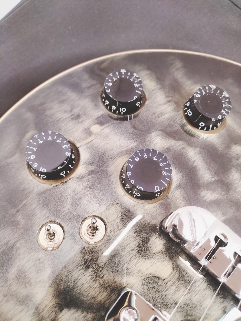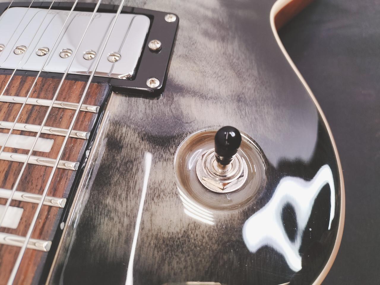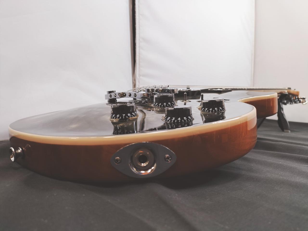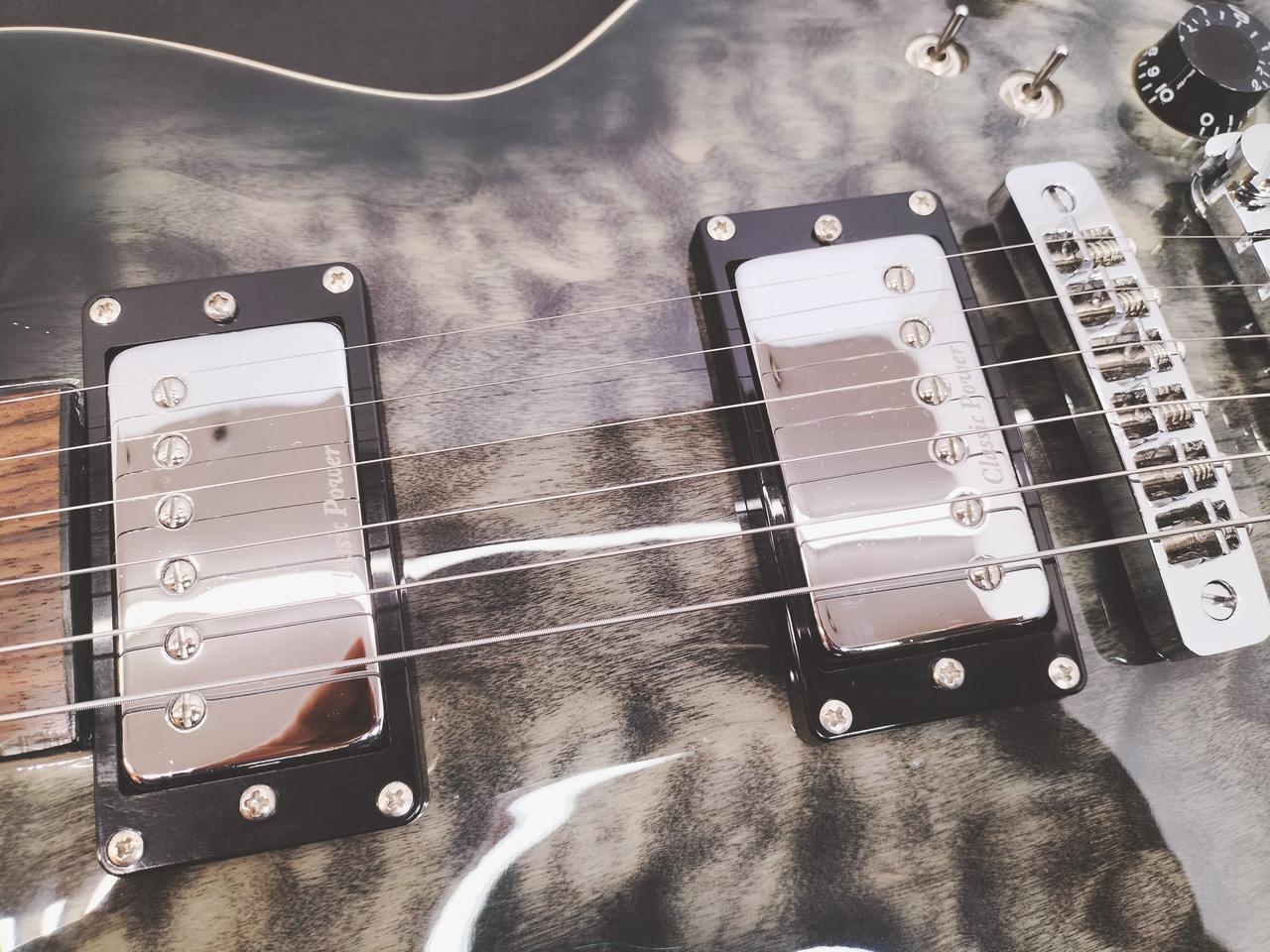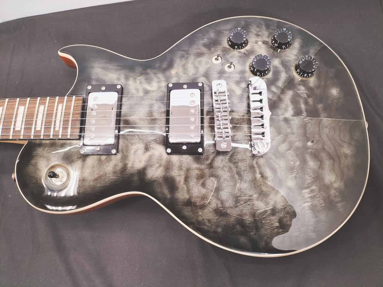 美しいキルテッドメイプルをトップに採用。バランスの良いクリアなトーン、暖かみのあるサウンドが特徴のクラシックパワー “CPH-1C” ピックアップを搭載し、各PUに対応するデュアルサウンドスイッチ、パラレルスイッチにより多彩なサウンドメイクが可能です。 |