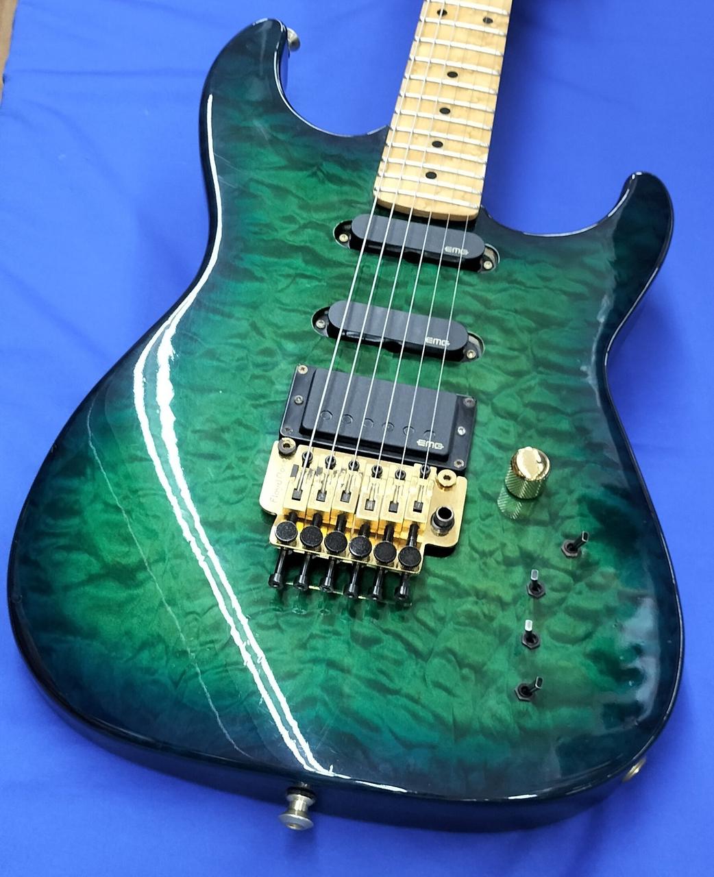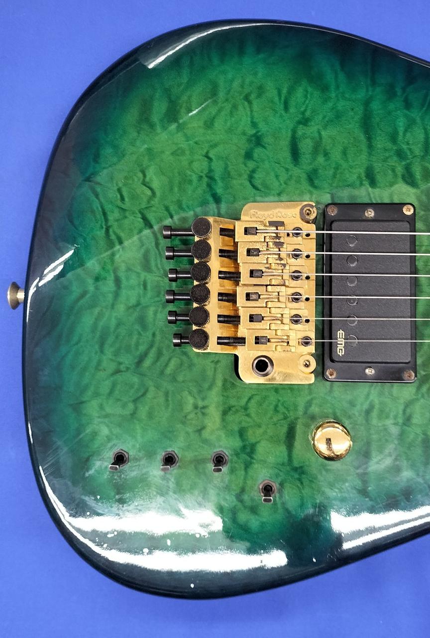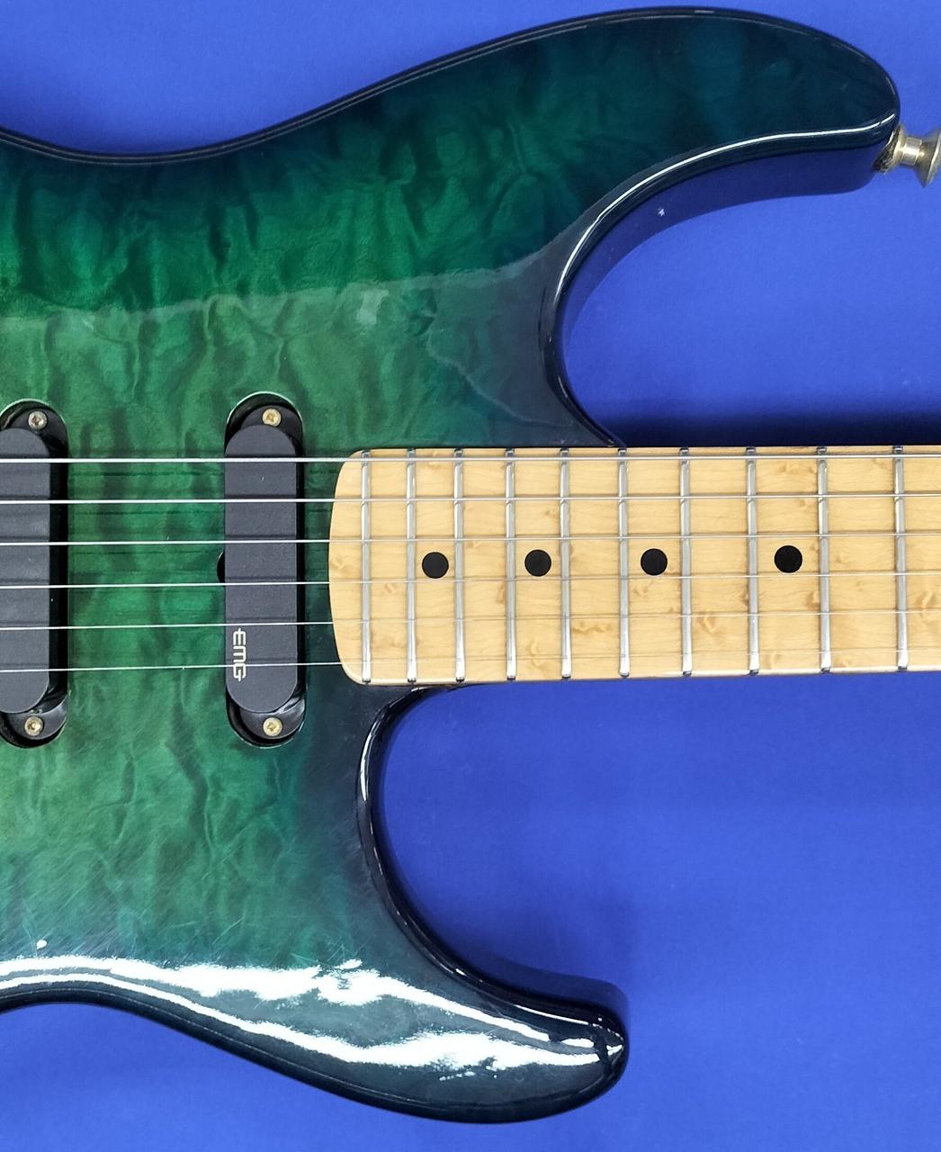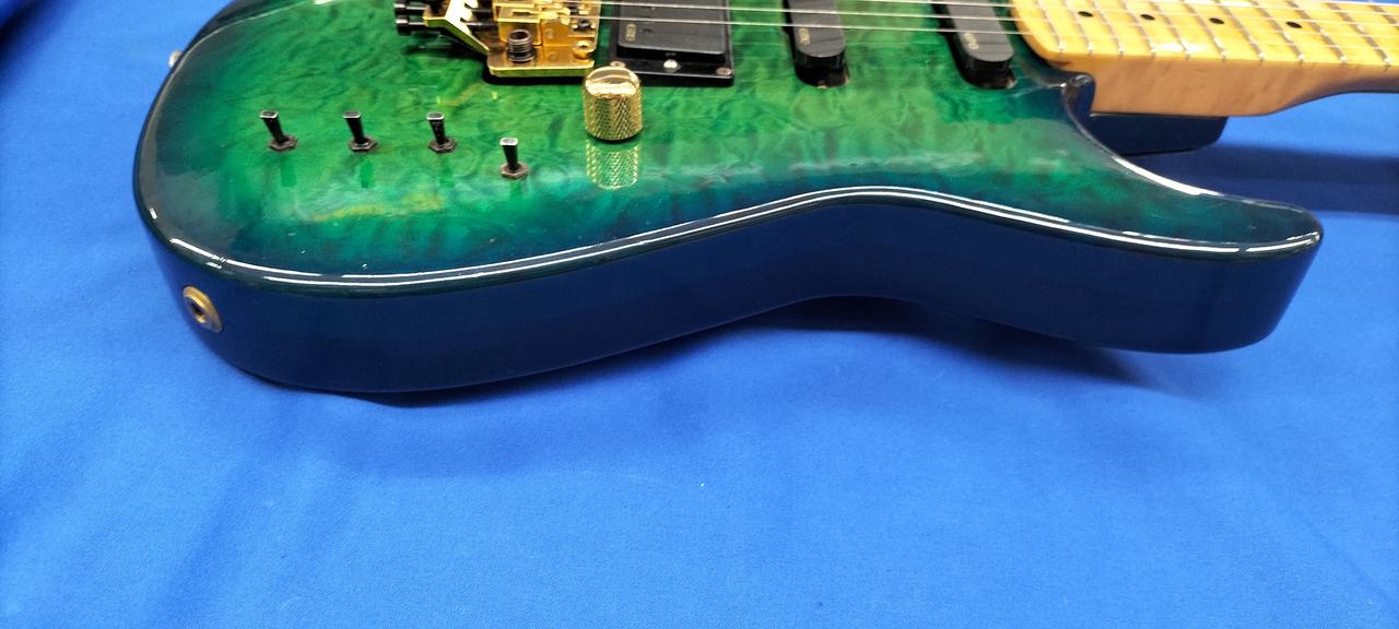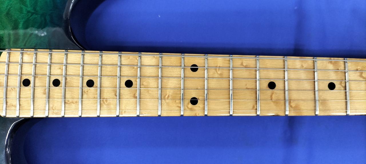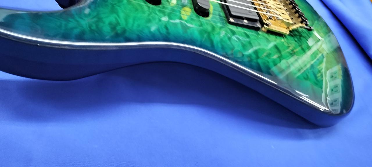 厚みのあるフレイムトップにバーズアイネックの豪華な作りの国産コンポーネント。 |