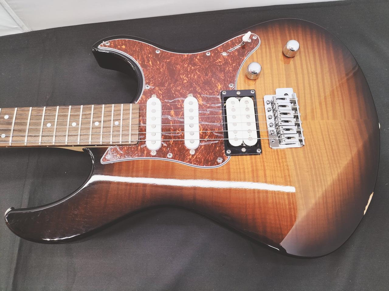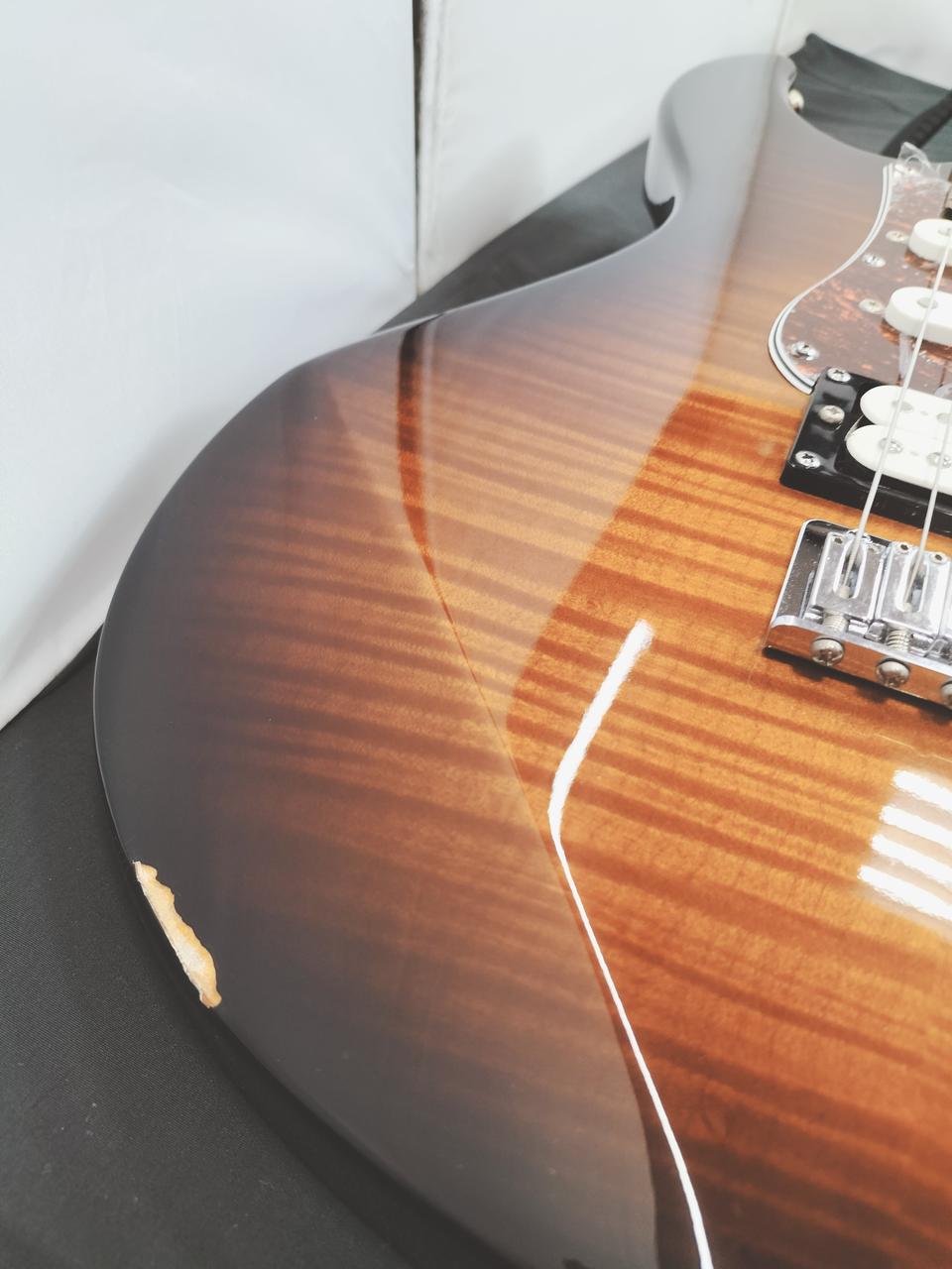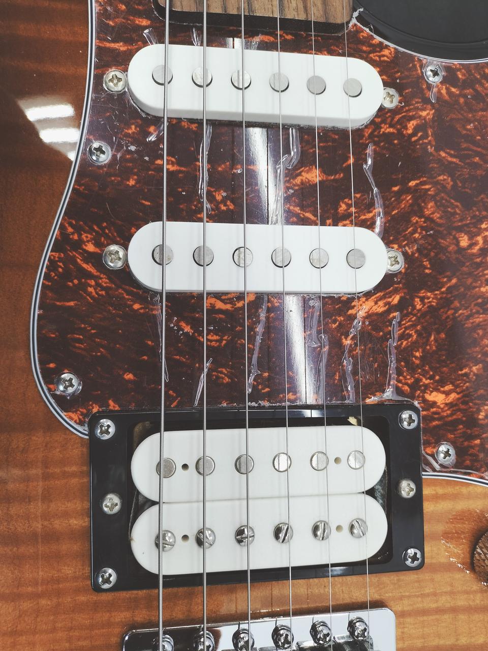 ボディトップとヘッドストックに美しいキルテッドメイプルを配した個性的で高級感あふれるモデル。リアのハムバッキングピックアップにコイルタップ機能を搭載し、ハムバッキングからシングル、シングルからハムバッキングの切り替えが瞬時に可能。アルダー/キルテッドメイプルトップボディ・H/S/S ピックアップ配列 / 5-WAYセレクタースイッチ。 |