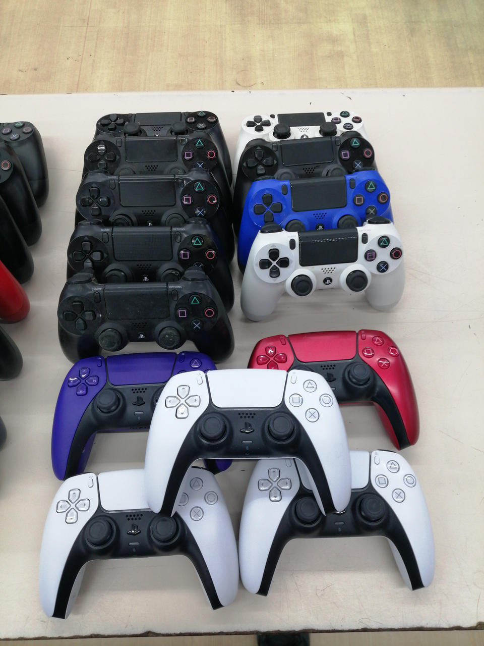 SWITCHプロコン×9、PS4コントローラー×25、PS5コントローラー×5 計39個セットになります。 |