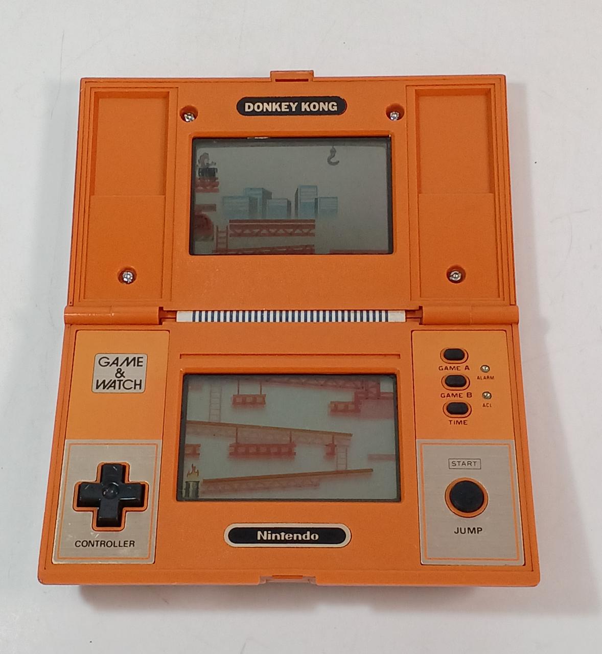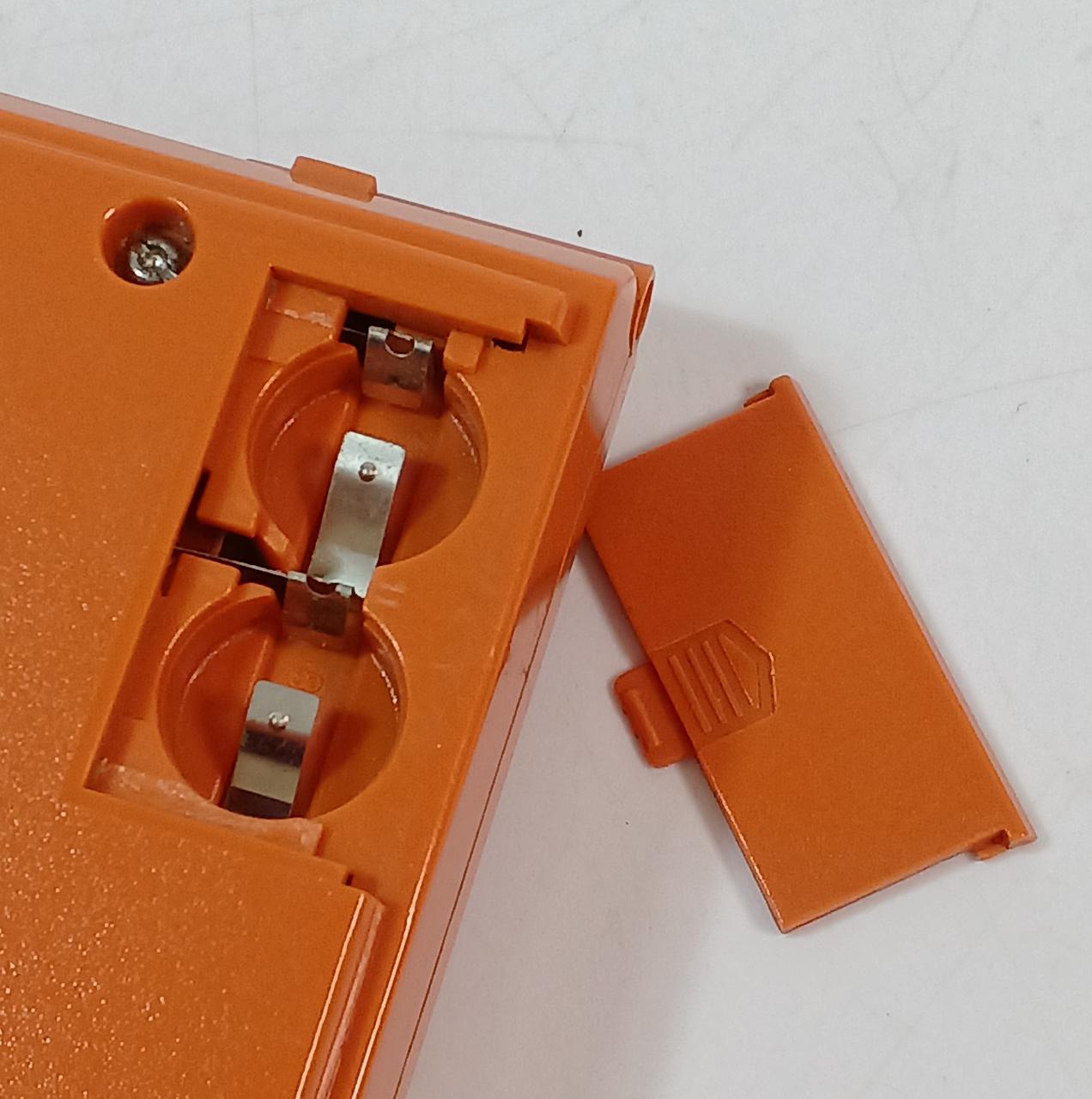 ボタン電池LR44×2個使用。動作はしますが、ヒンジが緩く角度固定出来ません。上画面の表示が薄いです。 |