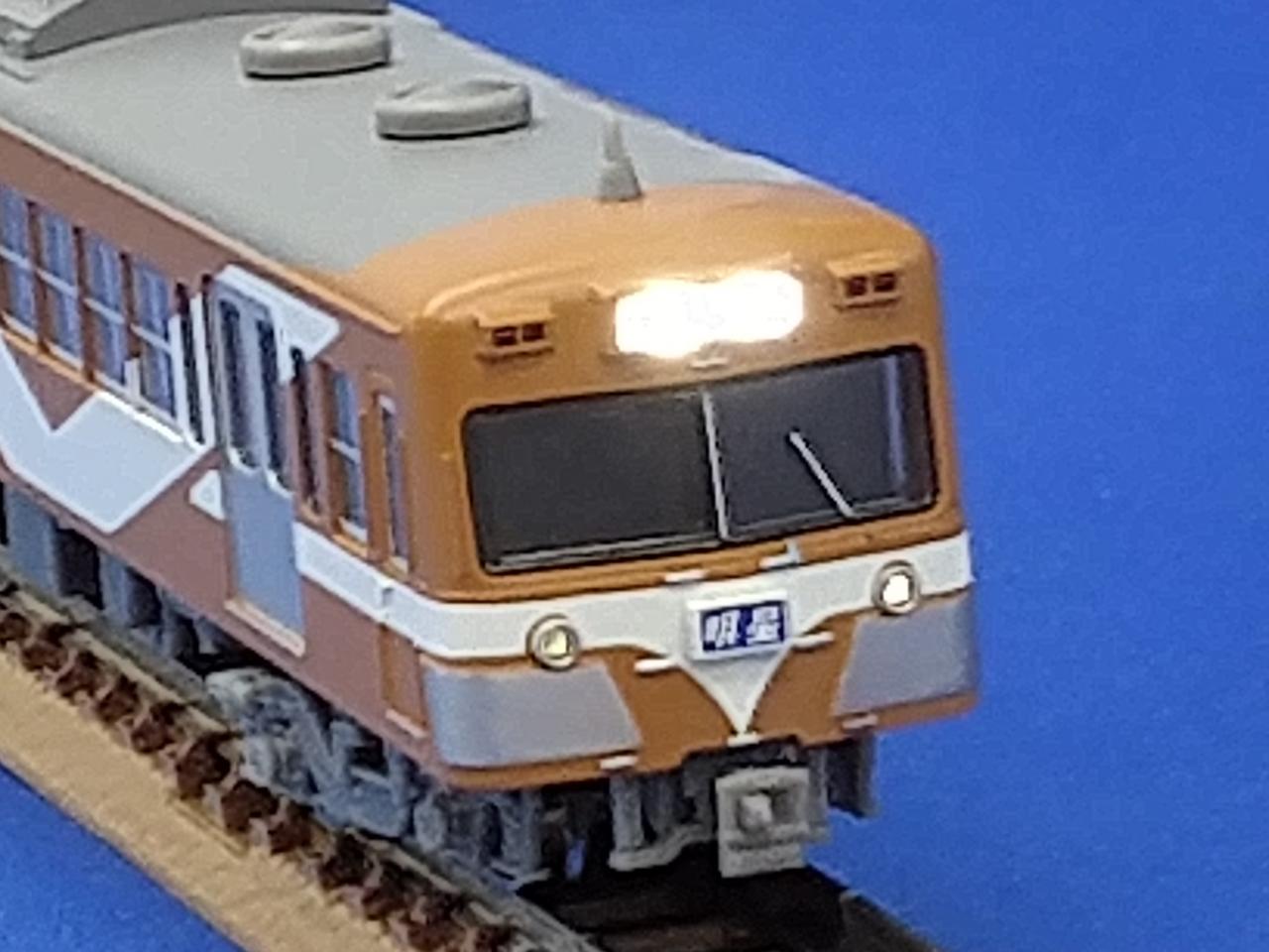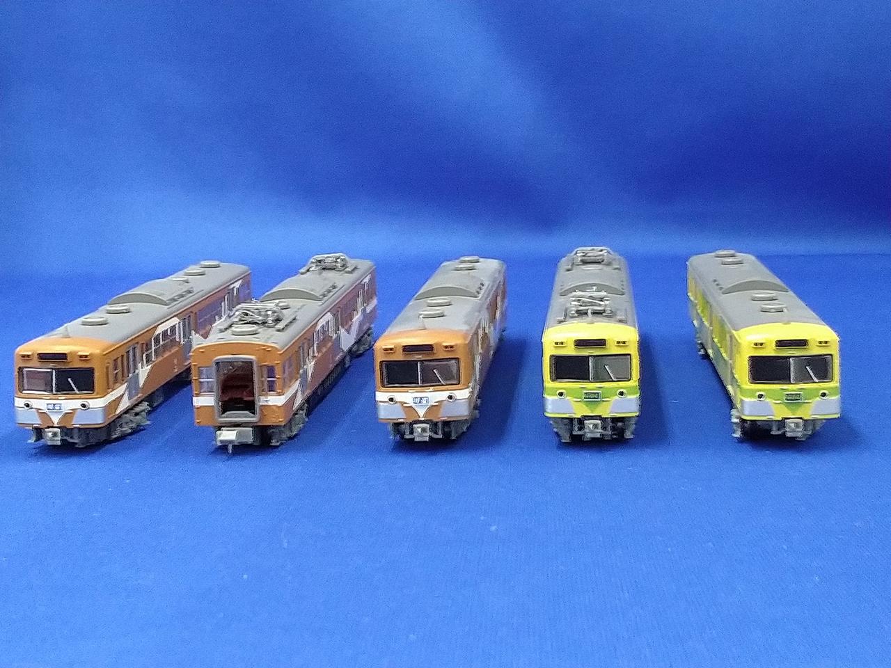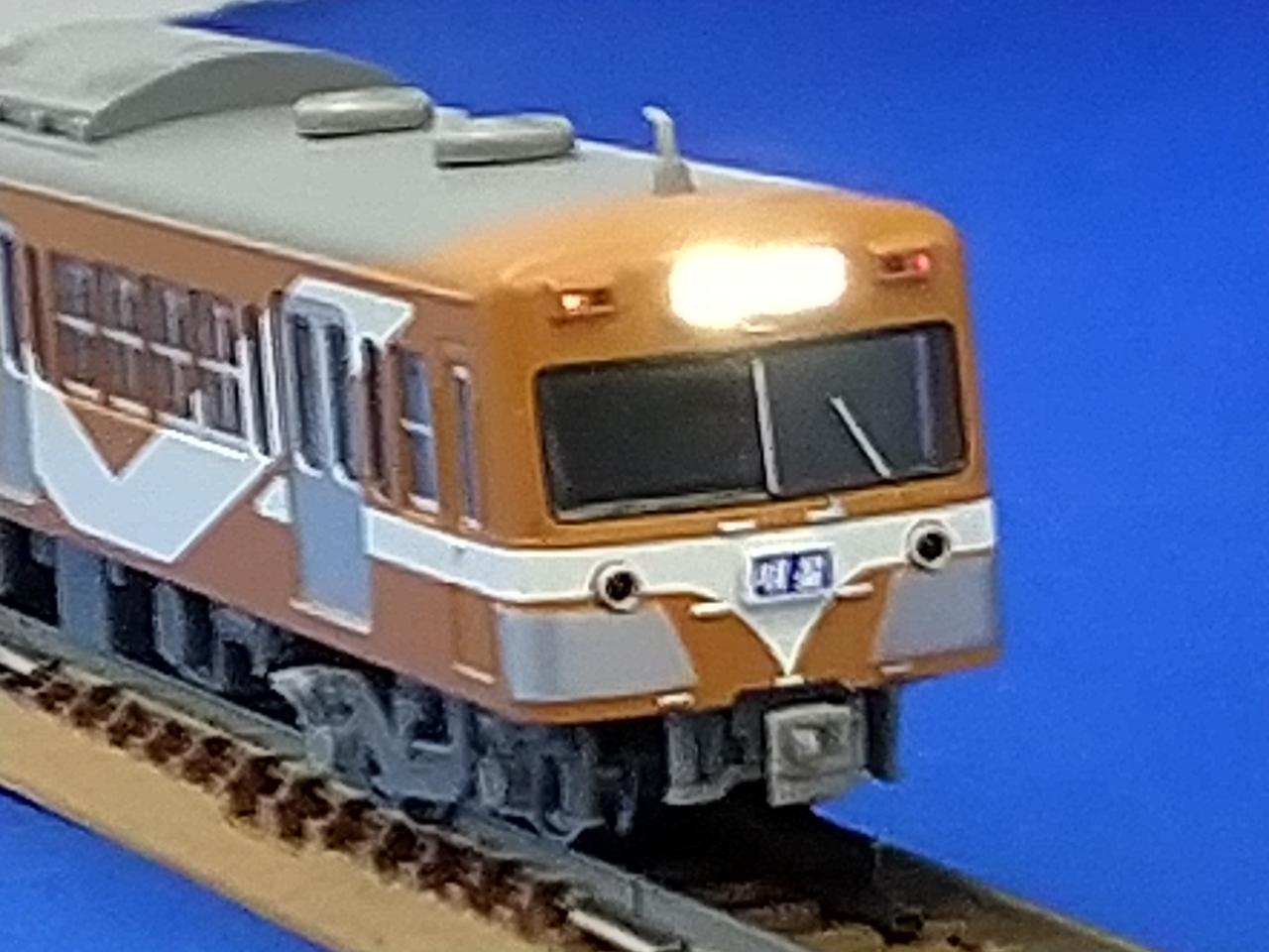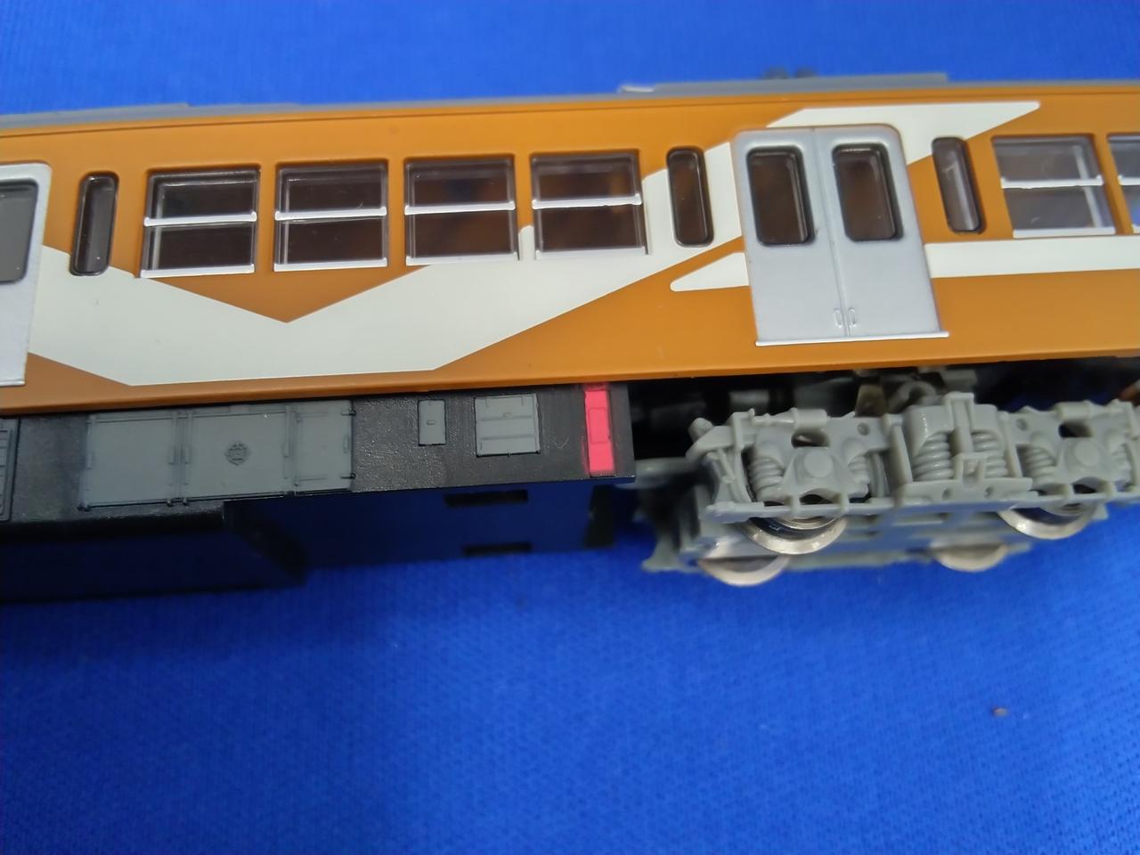 動力車の一部が赤く塗装されています。 |