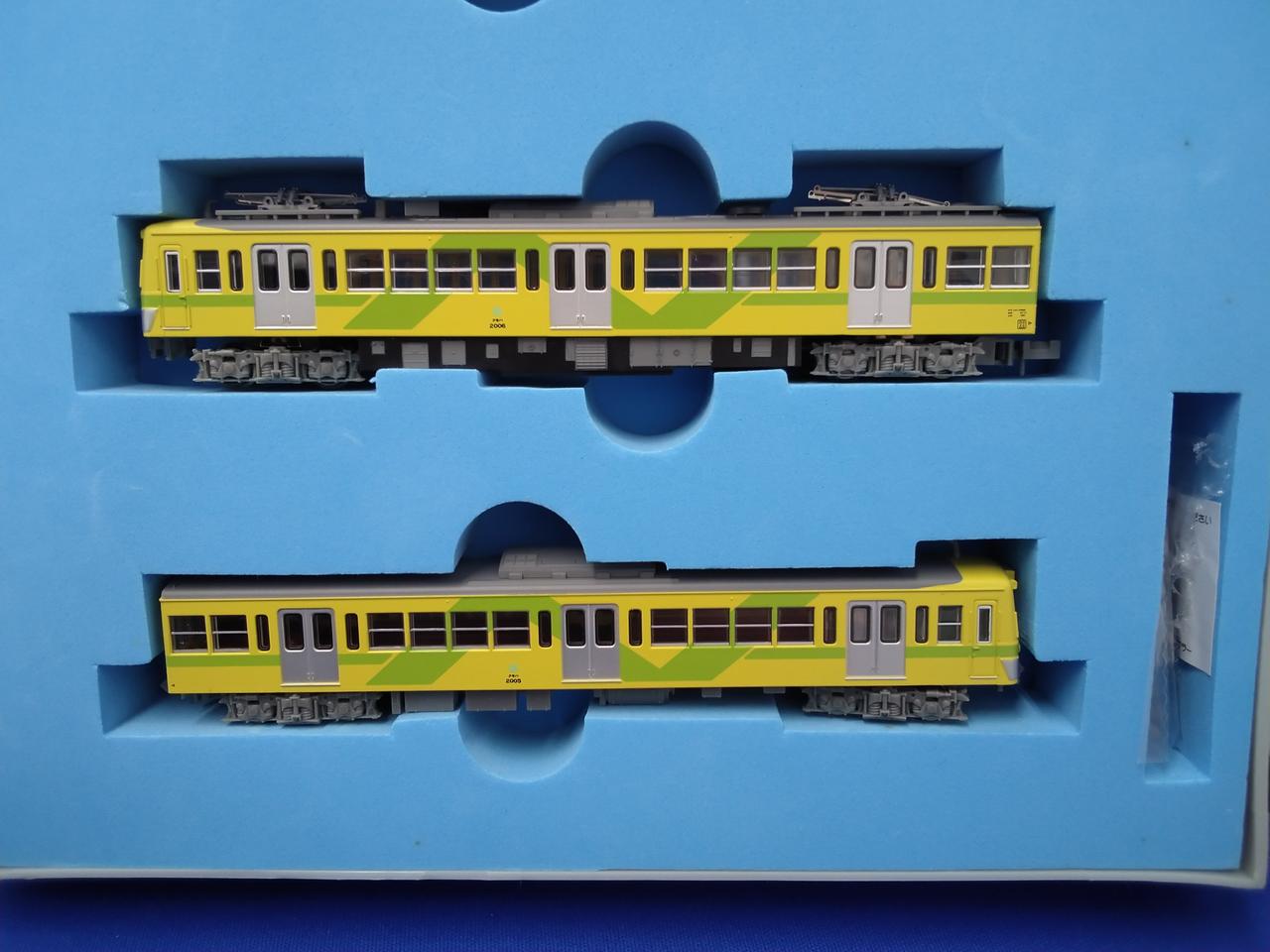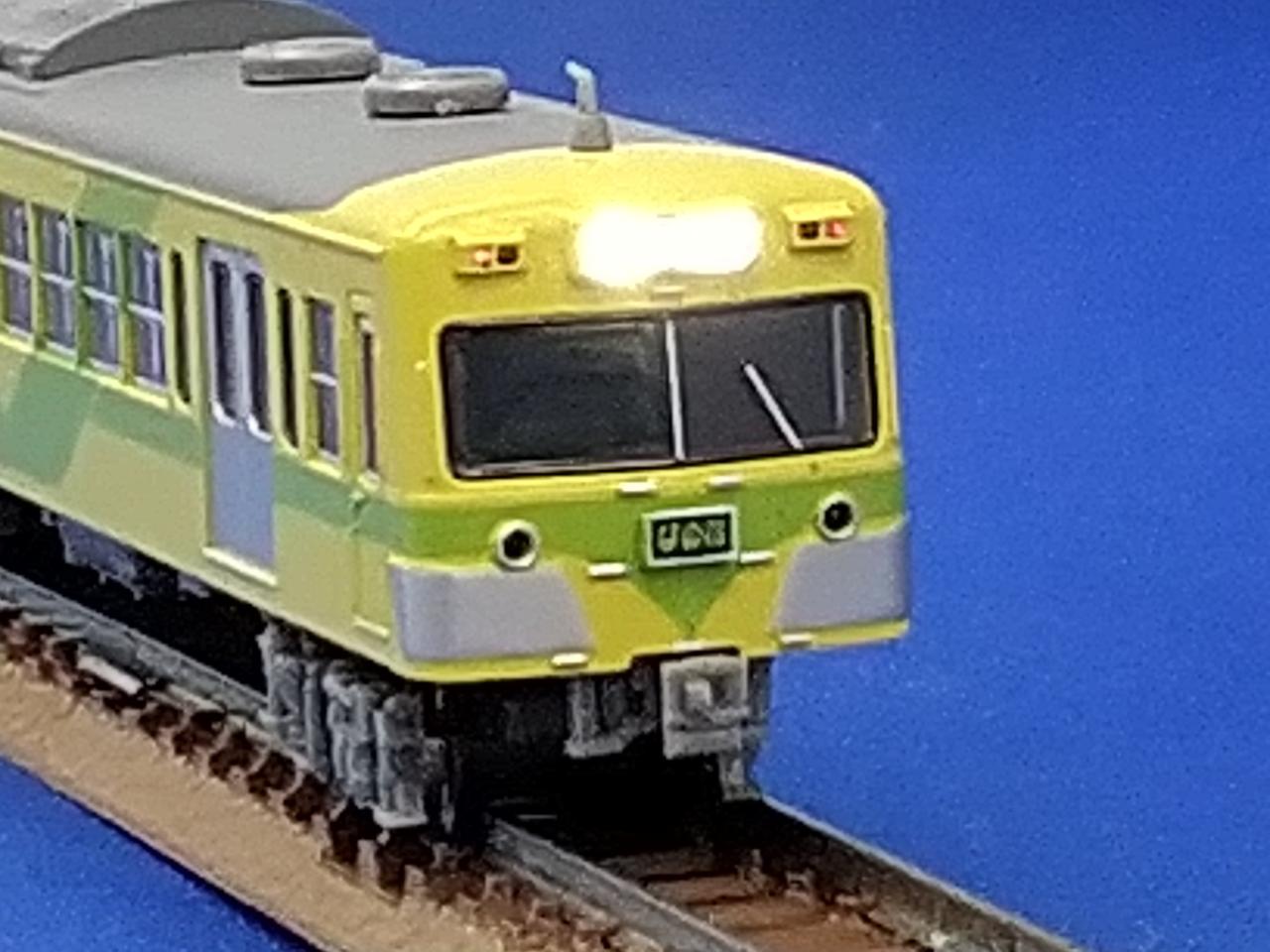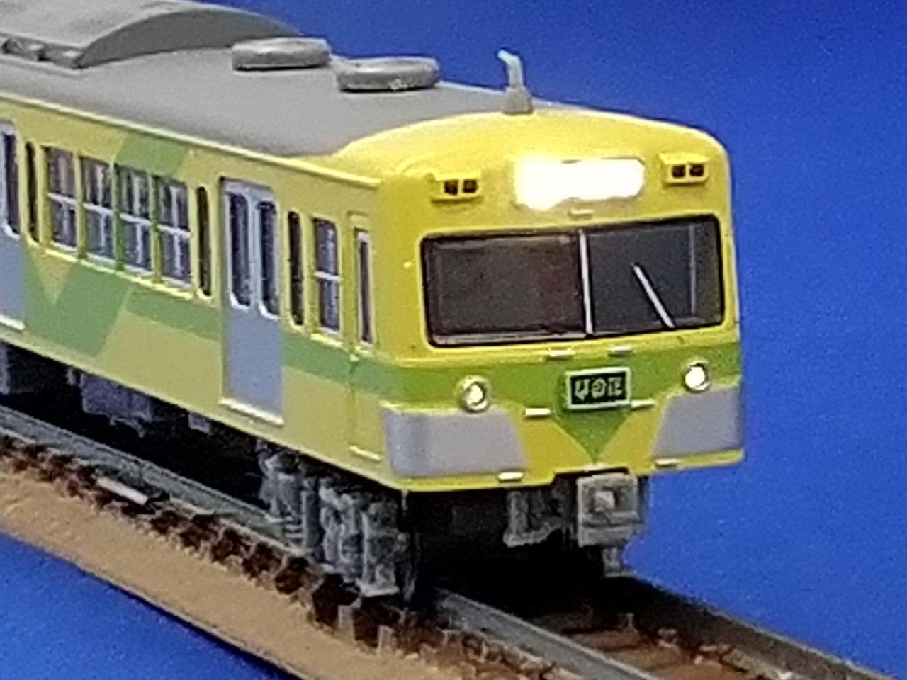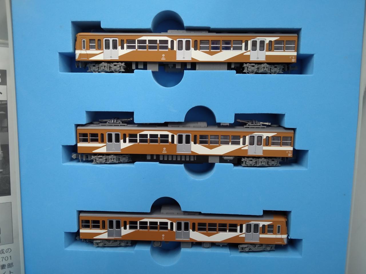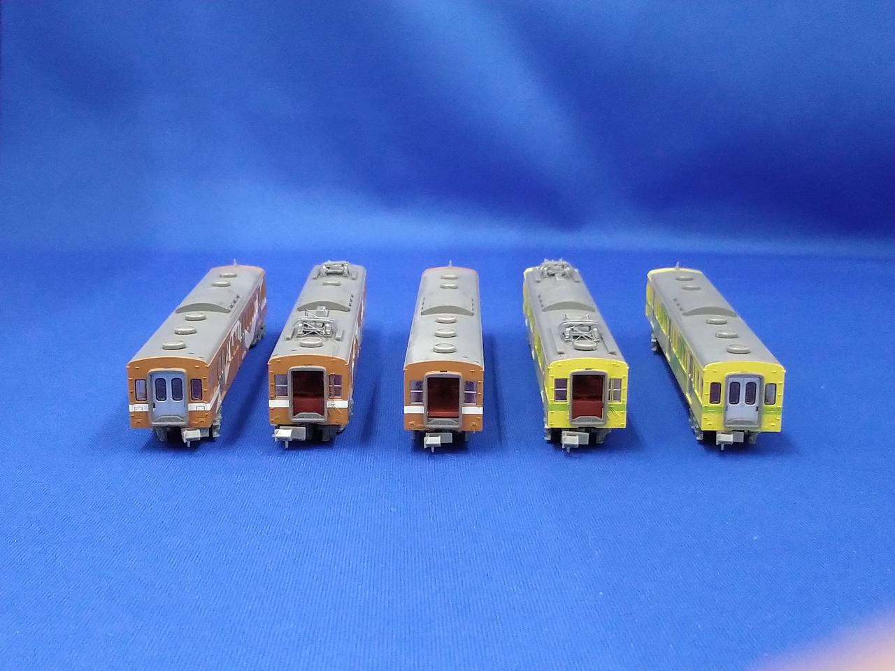 動力車の一部が赤く塗装されています。 |