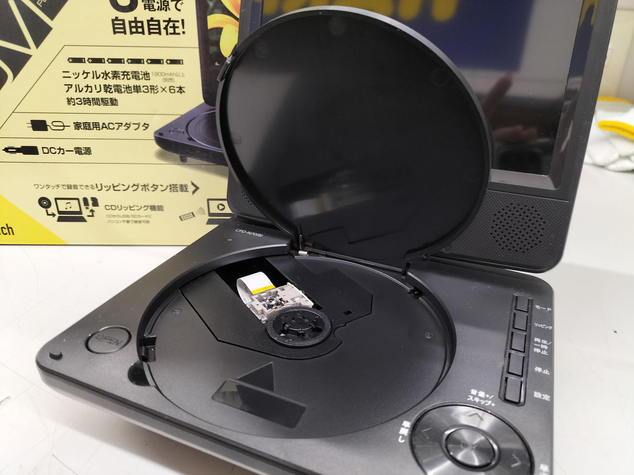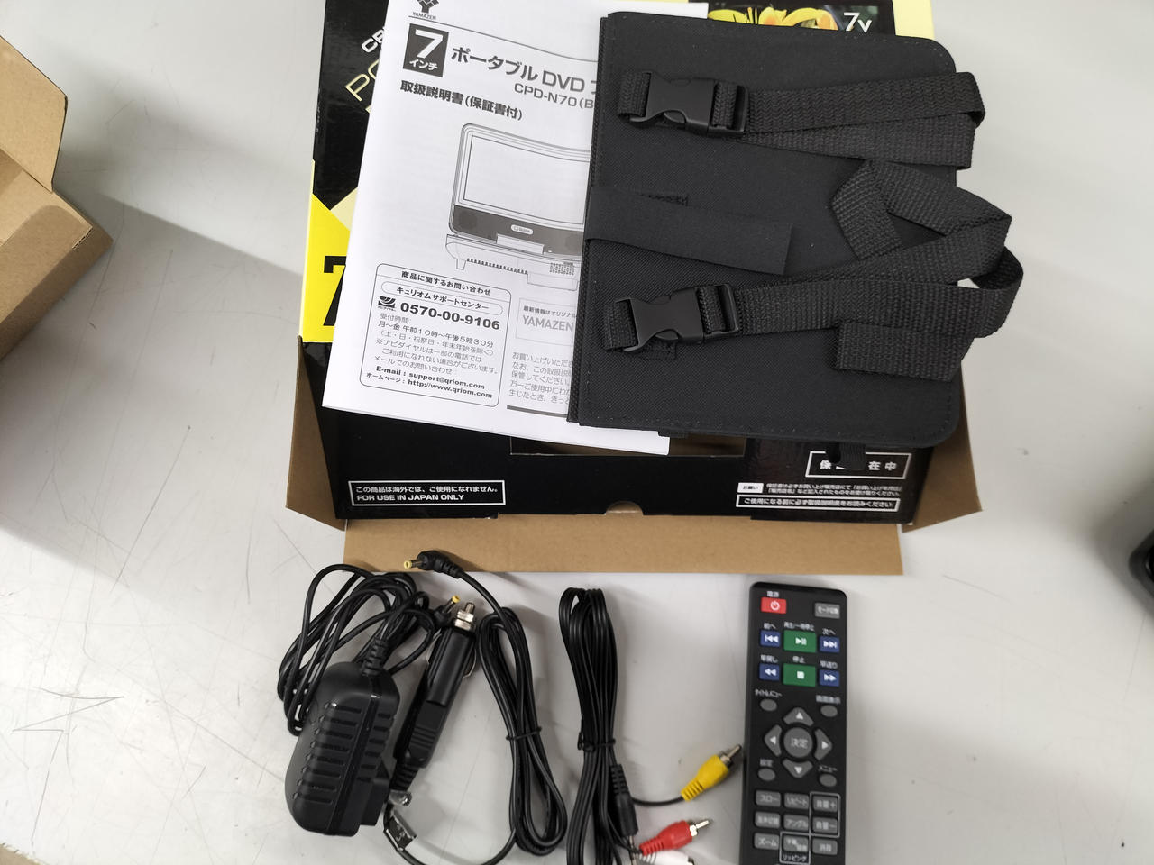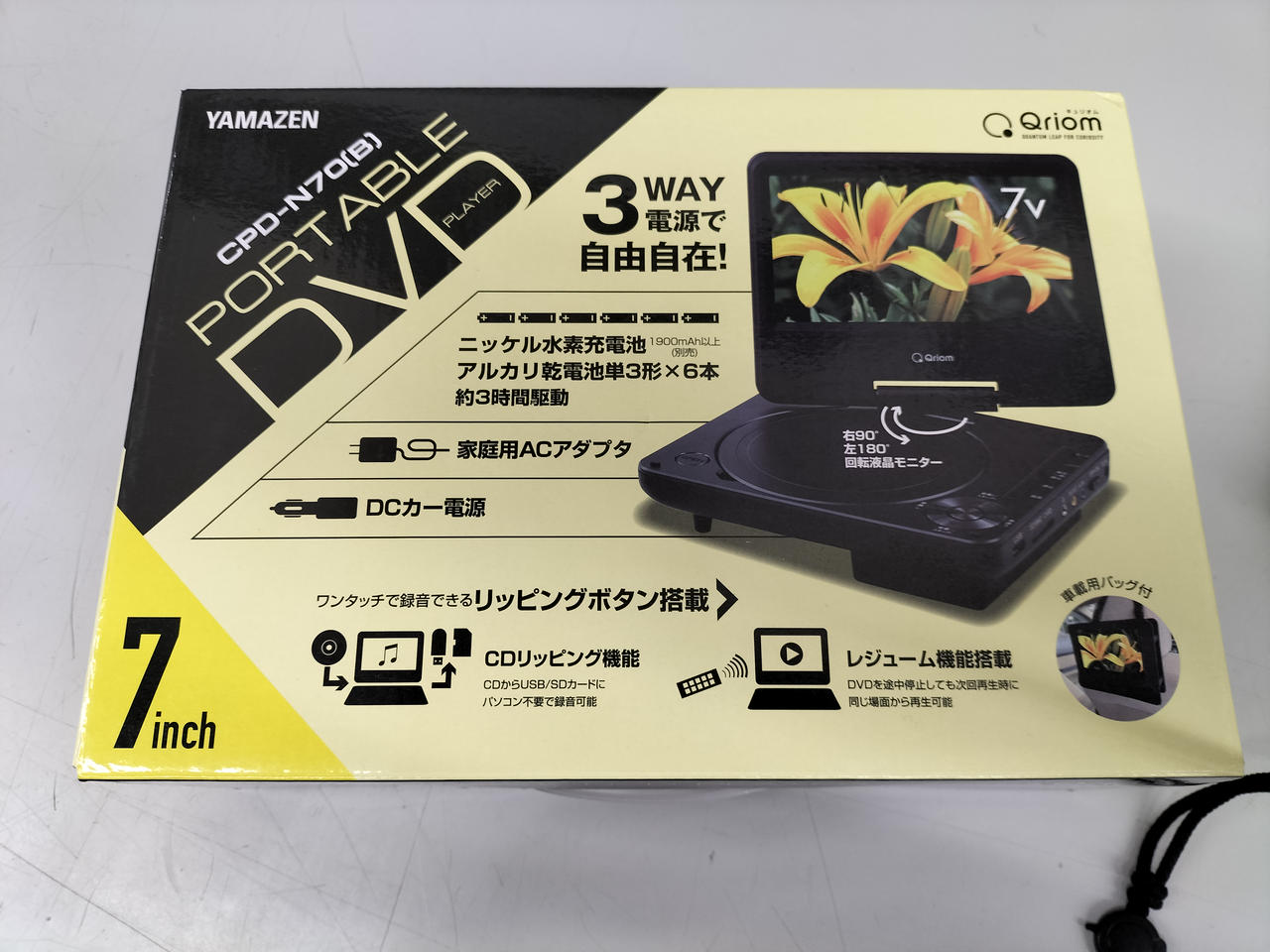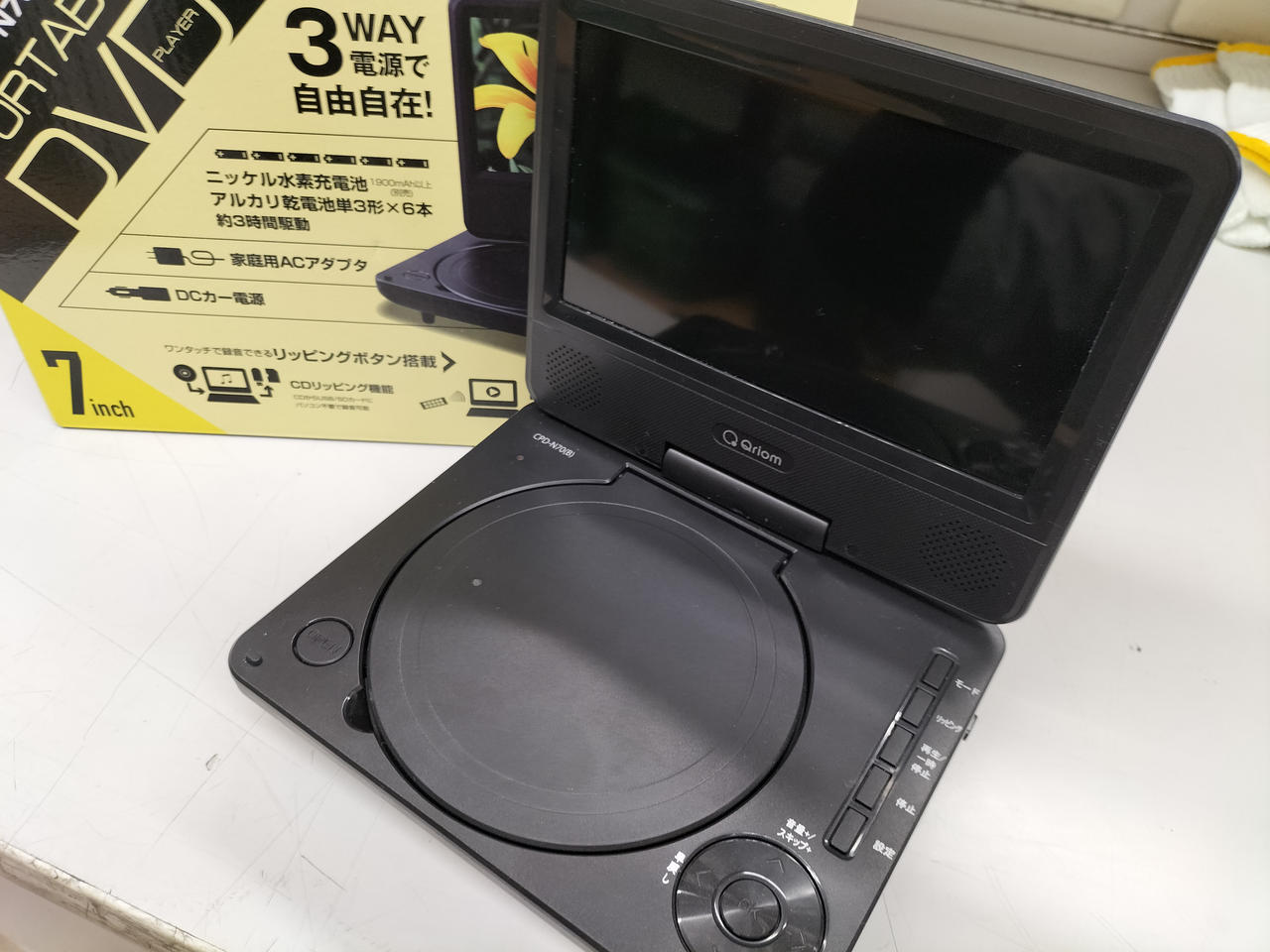 7インチ液晶のポータブルDVDプレイヤー家庭・車載用・乾電池での使用可能 |