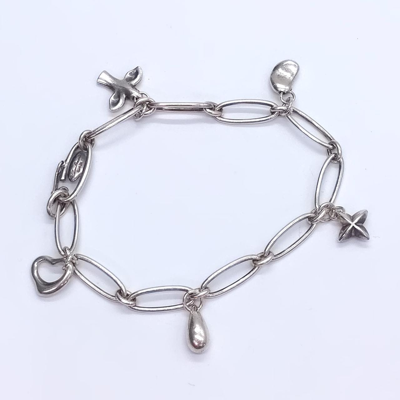 TIFFANYを象徴するビーンズやハート型などのミニサイズトップが5つ付いたブレスレットです。