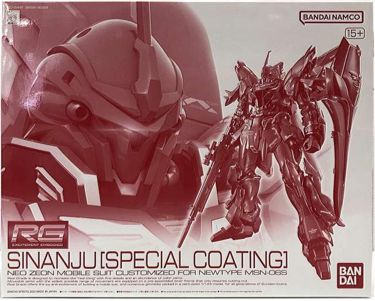 『機動戦士ガンダムUC』よりフル・フロンタル専用機であるシナンジュが、全身にわたり重厚感溢れる半艶消しメッキを施し、さらに内部フレームにメタリック成形色を採用した特別仕様リアルグレードで登場 |