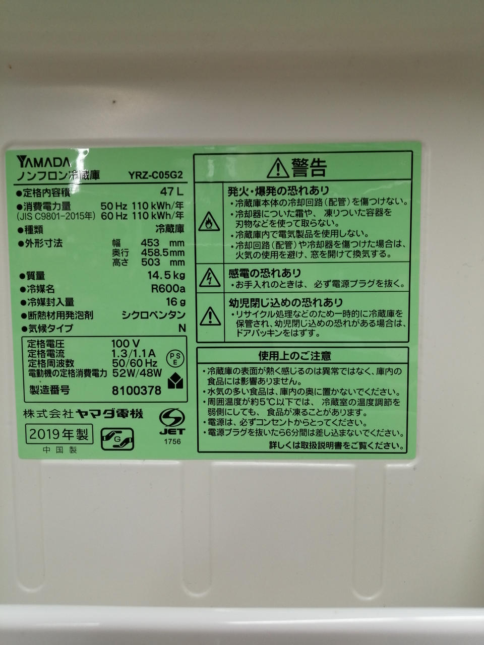 冷蔵庫、洗濯機、大型家具の配送は行なっておりません。 |