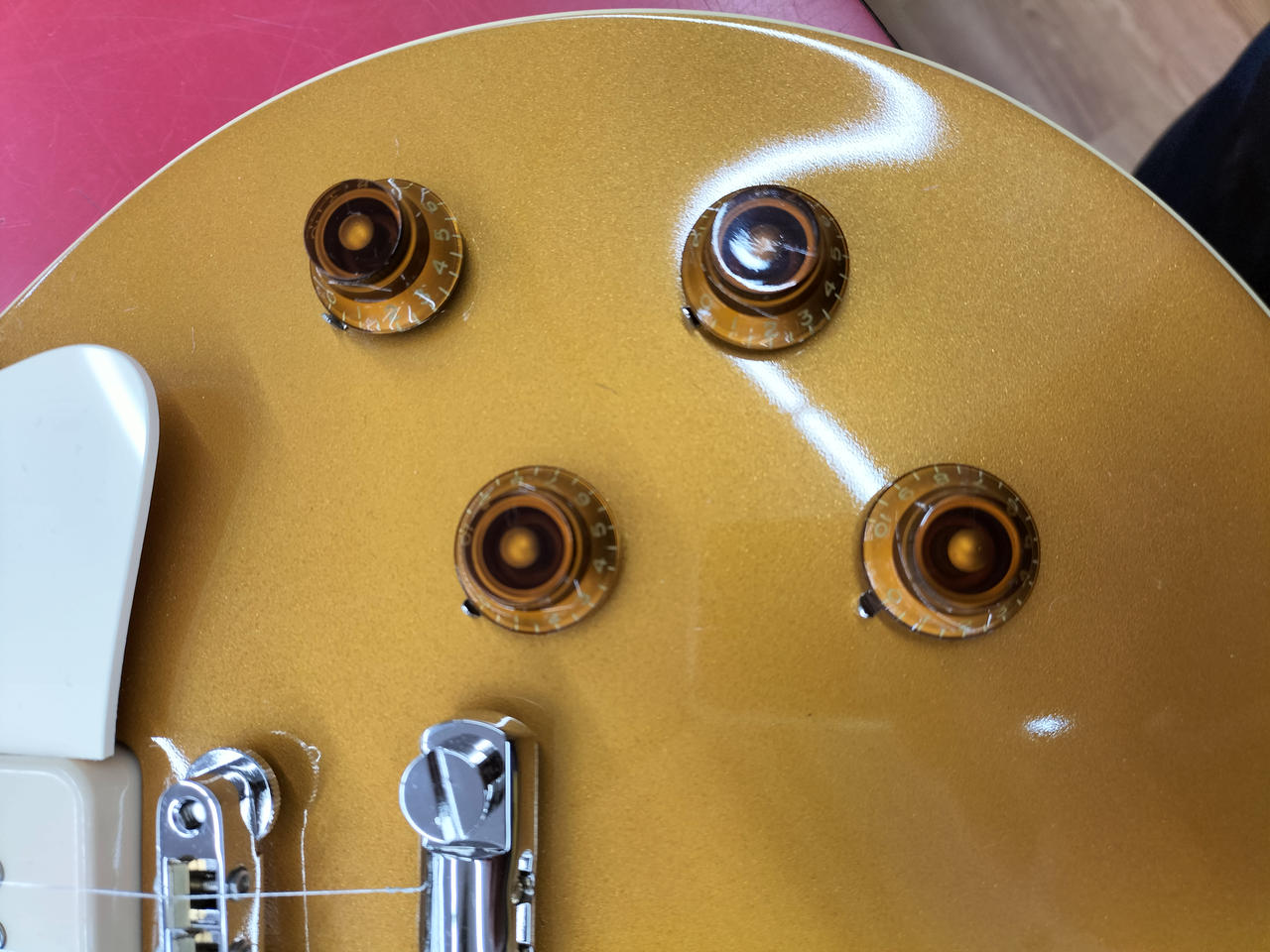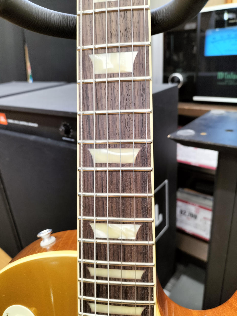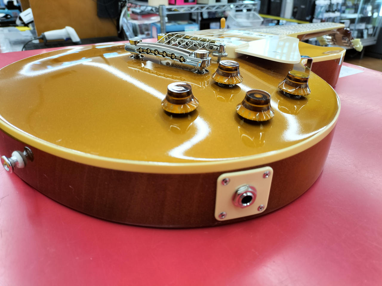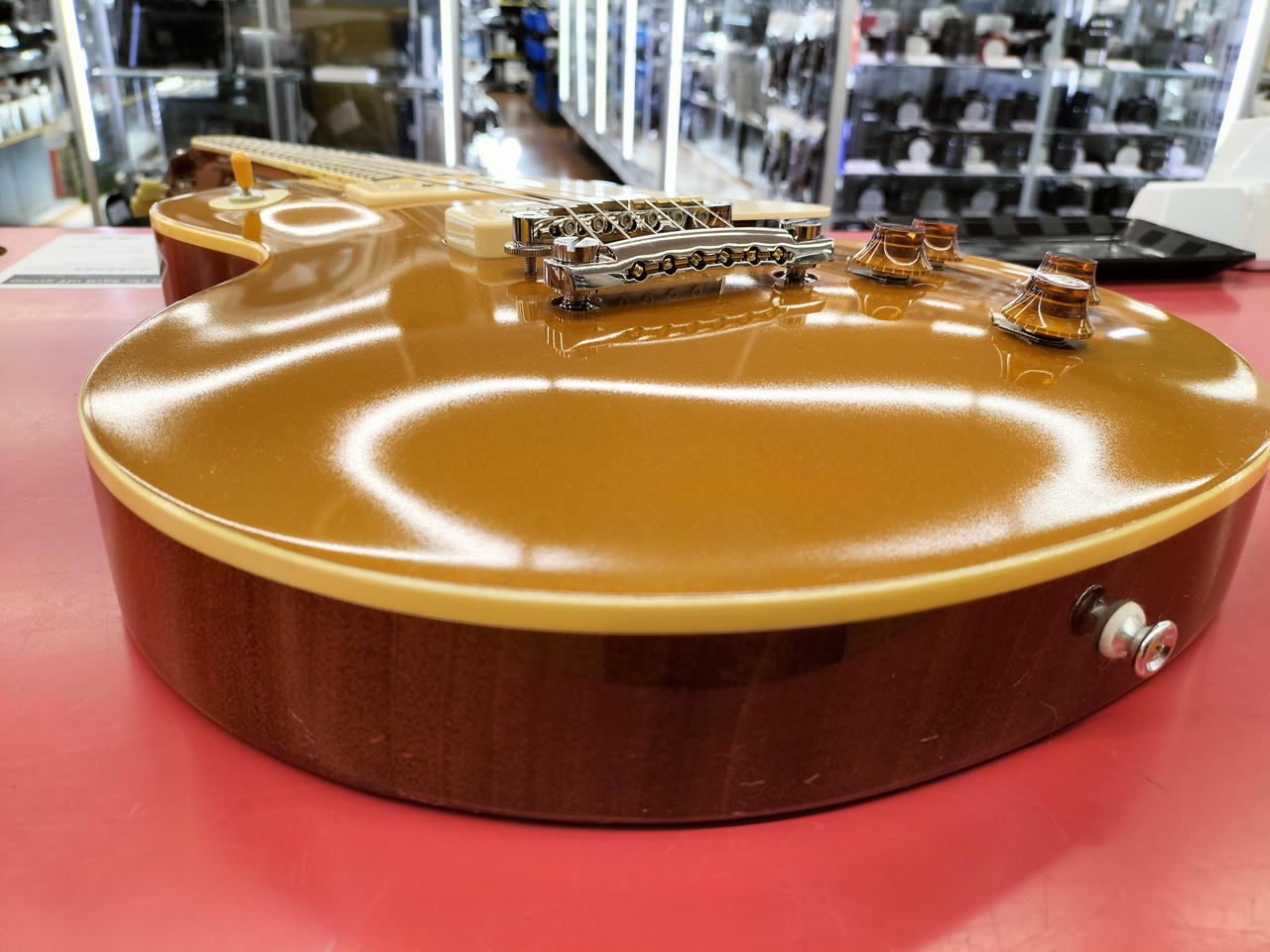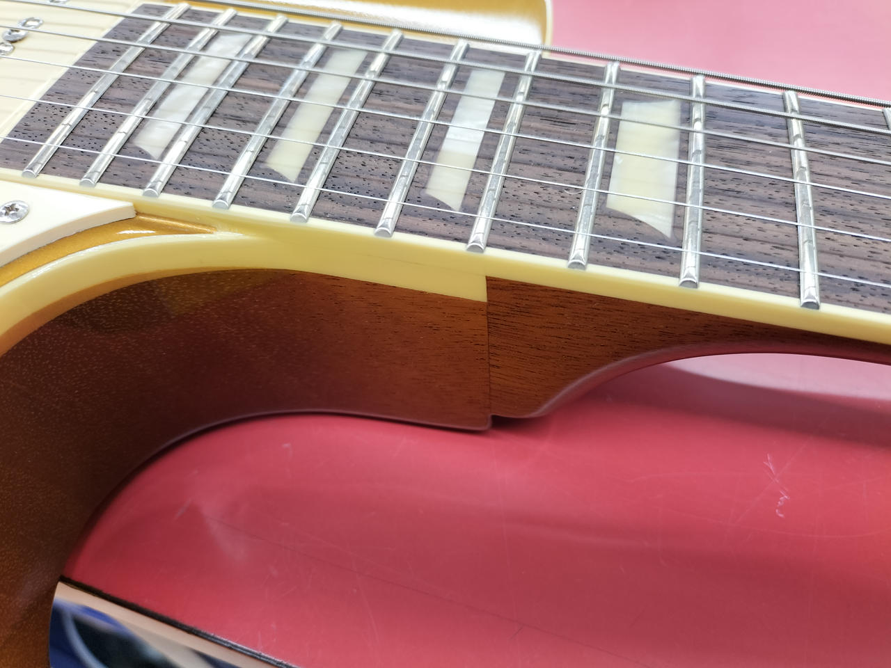 本体重量4.438kgと、やや重めなウェイトで、軽すぎるレスポールとは違いサステインの良さも魅力です。 |