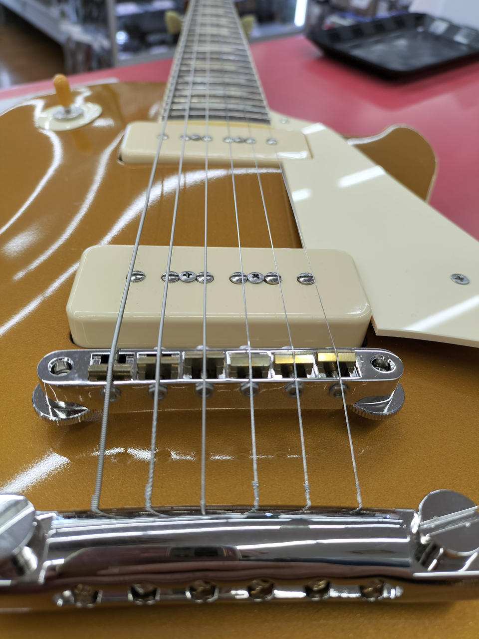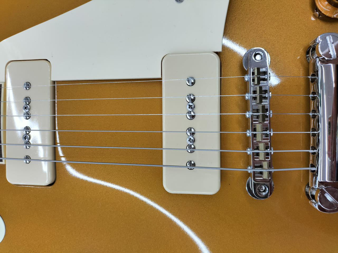 50年代中期スペックを踏襲しており、オリジナルのP-90×2、ABR-1スタイルのブリッジに軽量なアルミニウム・テールピースを搭載。 |