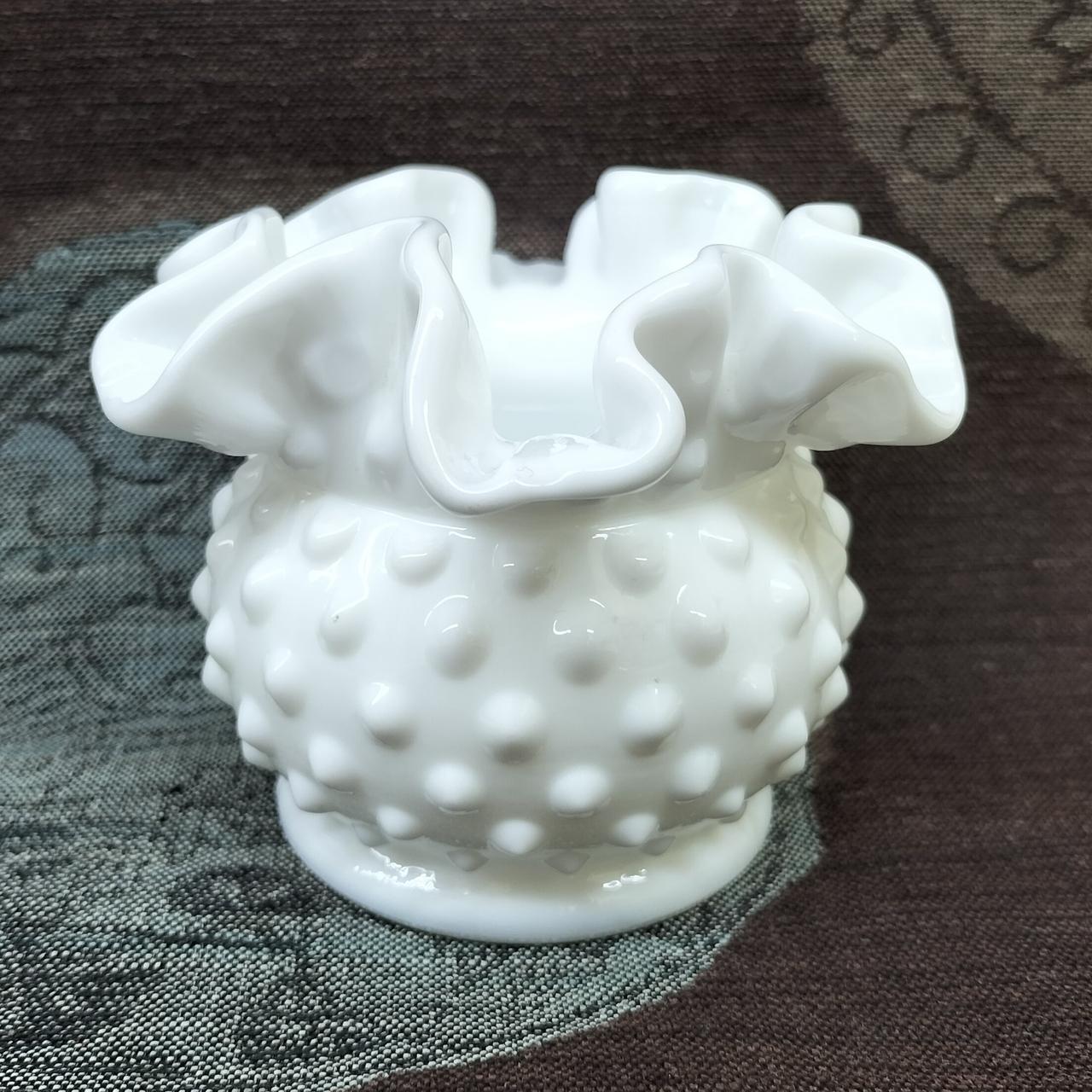 ミルクガラスでボブネイル(鋲)が特徴のフラワーベース。アンティーク好き方に!