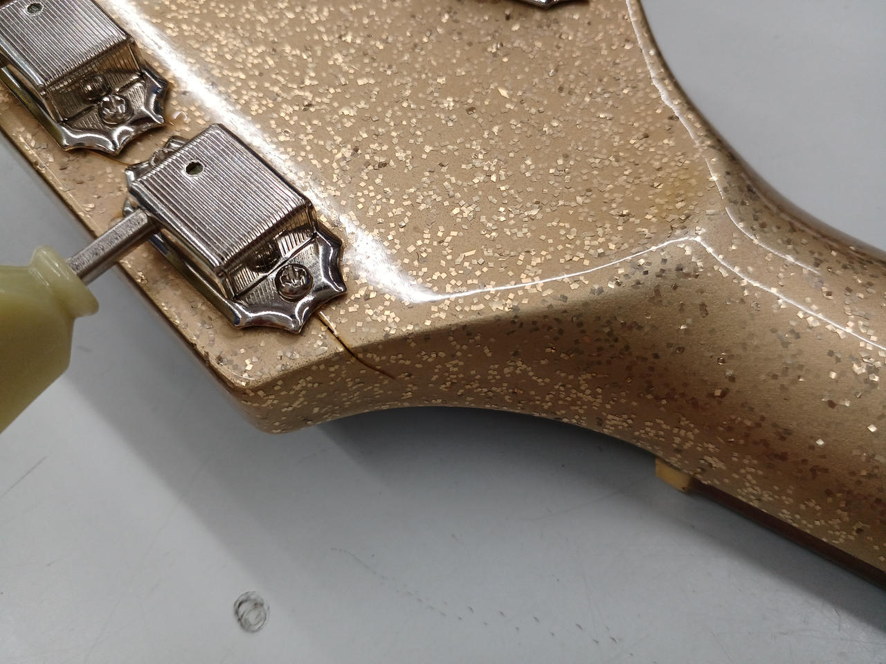 ペグ交換されており、6弦付近ヒビあり 使用感ありますがまだまだパワフルなサウンドを奏でます! |