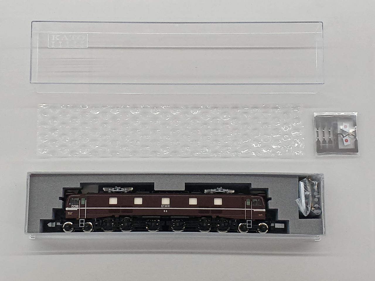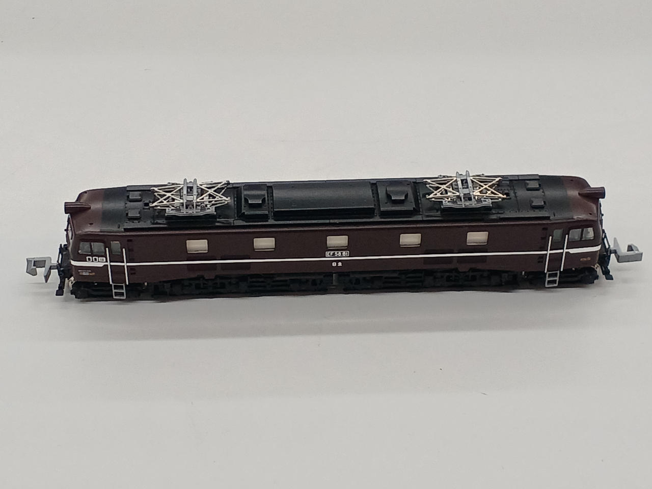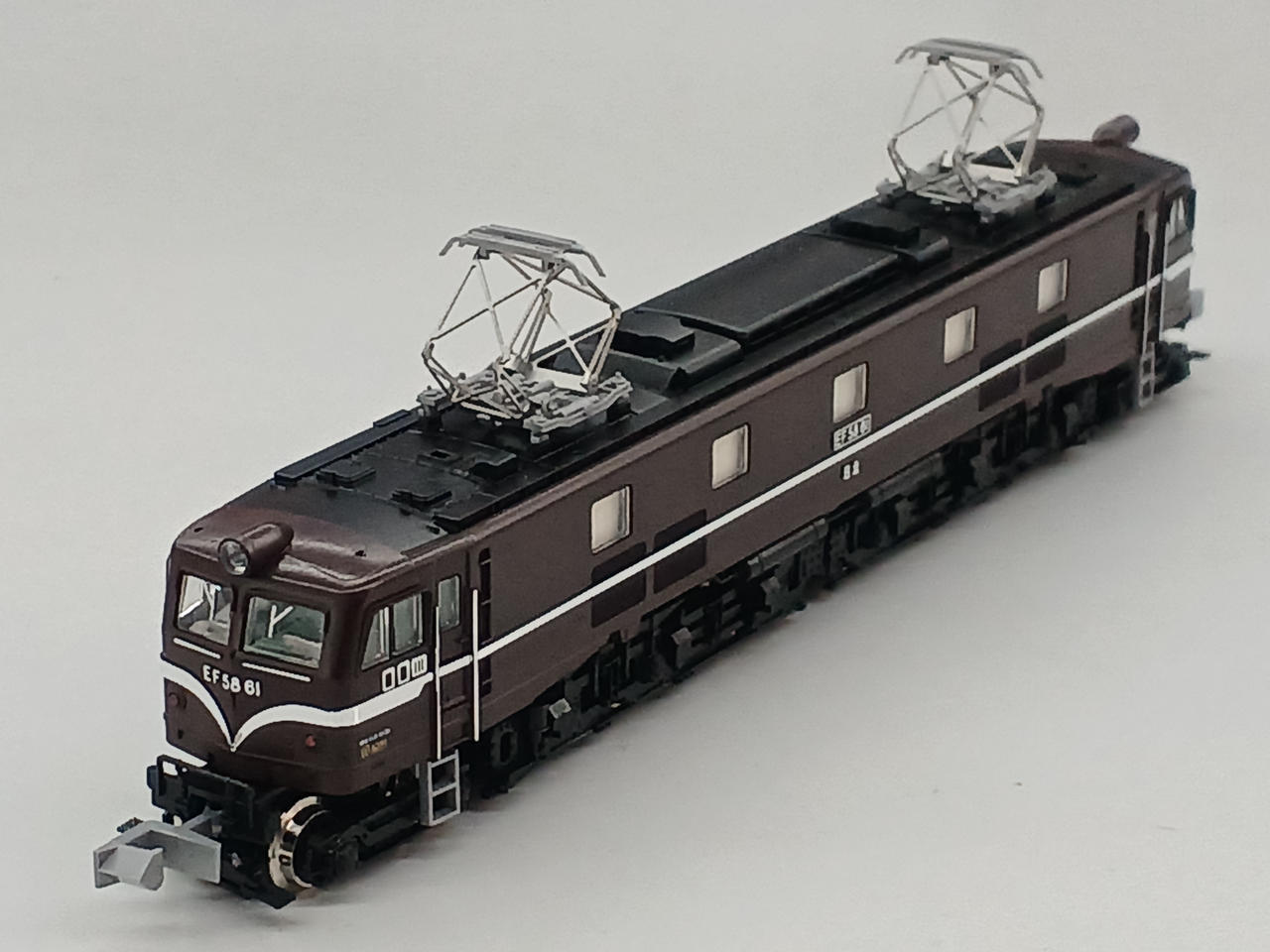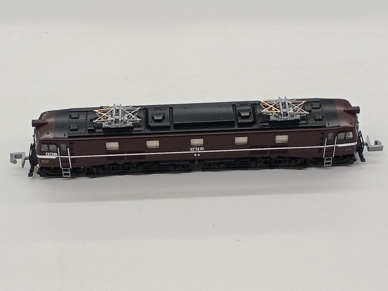 EF58 61号機は1953年に日立製作所 水戸工場で製造されました。 製造時からお召列車の指定機で、生まれもって美しい姿を保ち続けています。 ロイヤルエンジンと呼ばれる同車は岩国や新潟、黒磯に顔を出している姿が記録されています。 オリエントエクスプレス'88を牽引するなど、日本の列車史上において欠かせない存在です。 東京機関区、新鶴見機関区、田端運転所と渡り歩き、2008年に休車、2022年に鉄道博物館に保存展示されました。 2025年ロット、パーツ未使用です。