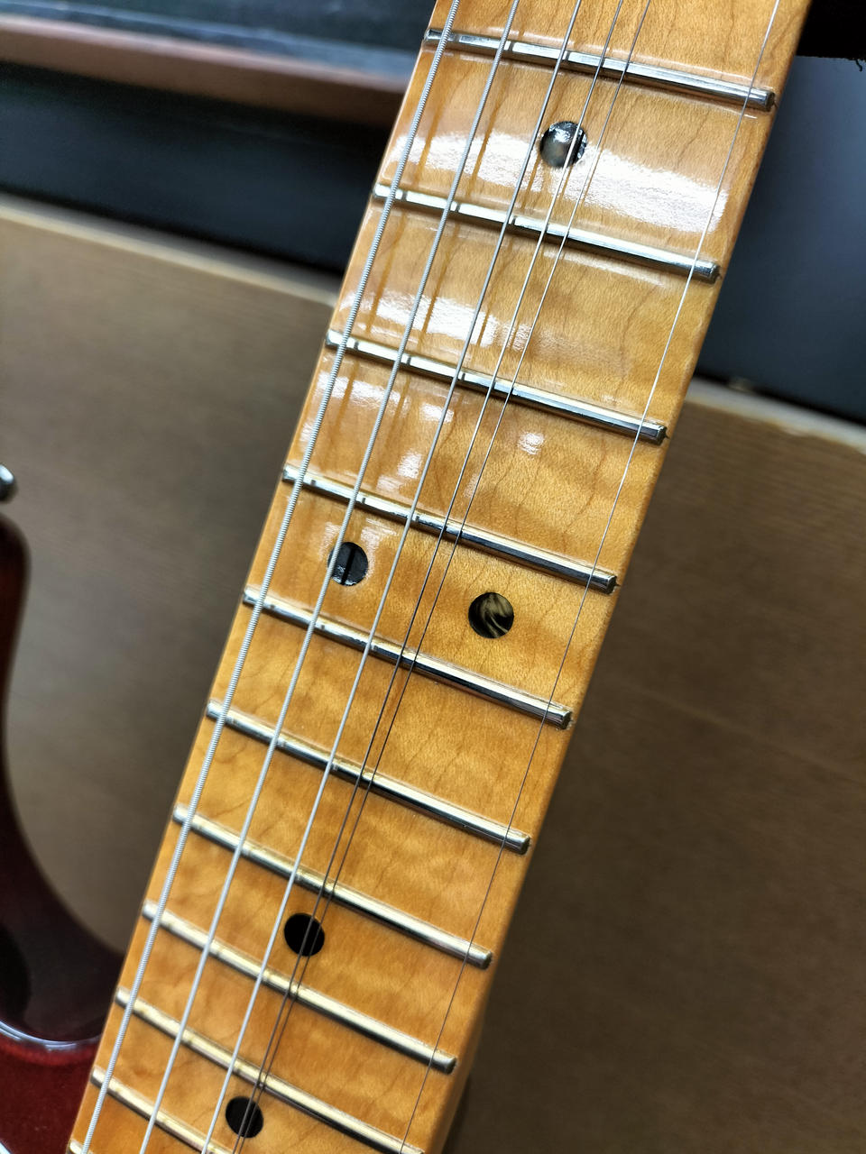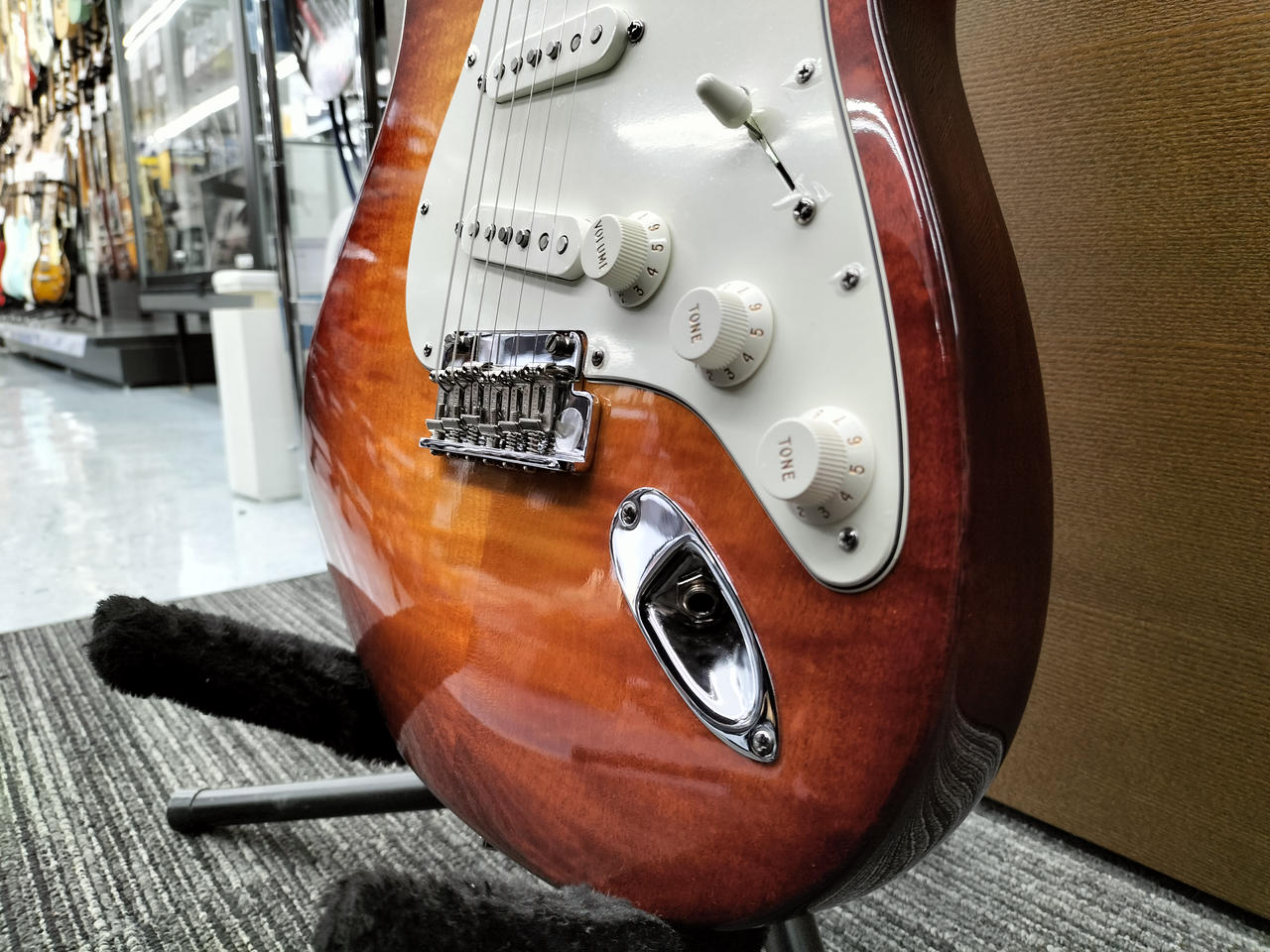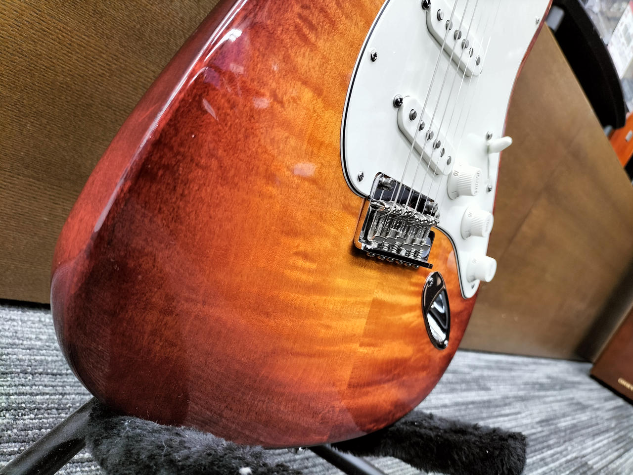 当時のFENDERレギュラー生産最高級ラインとして生産されていた”SELECT STRATOCASTER”です!艶やかなフレイムのメイプル・トップ!2点支持ブリッジにロックペグのモダンな仕様です!ほとんど弾かれていない美麗な一本!フレット減りもほとんどありません!お探しだった方ぜひ! |