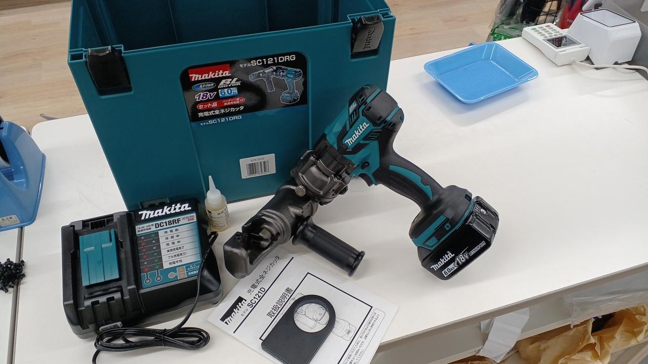 バランススタンドで本機を水平に保持し、全ネジを平行切断可能。 |