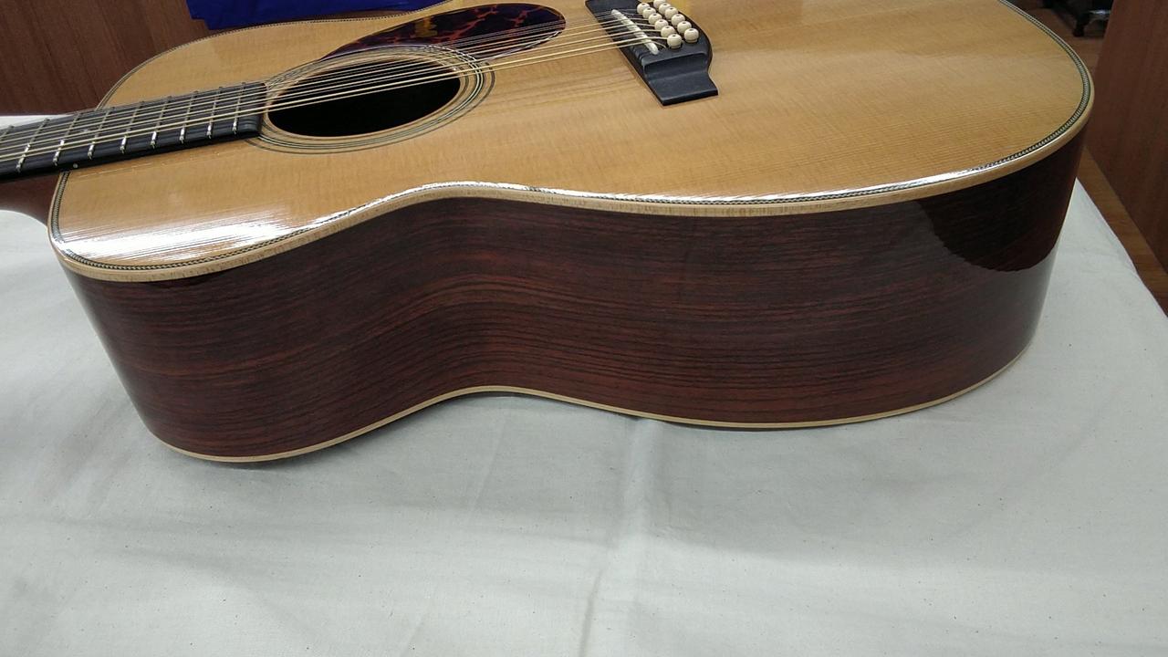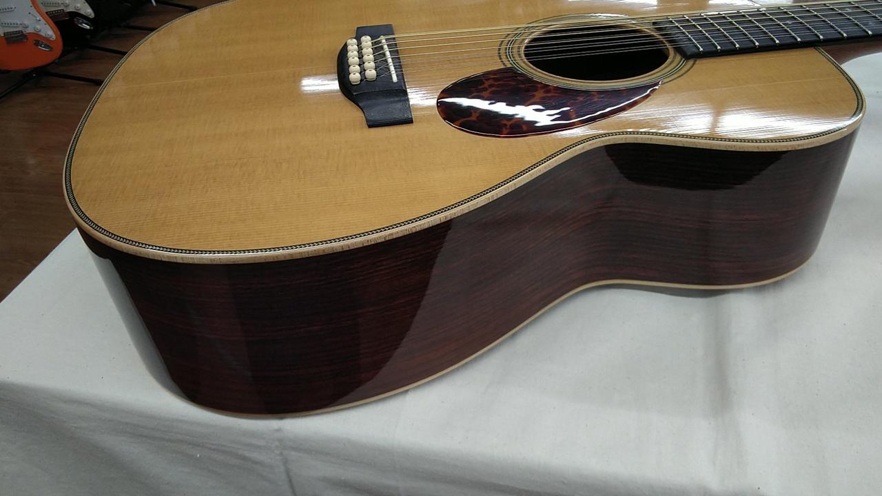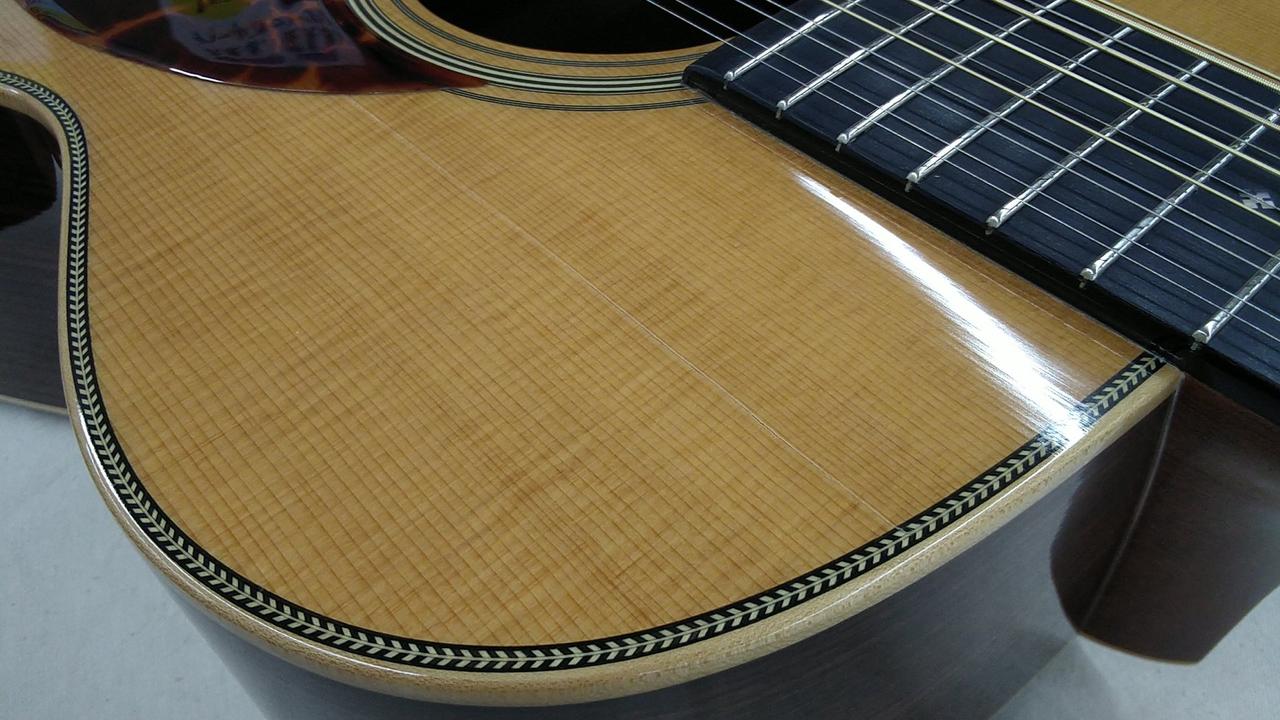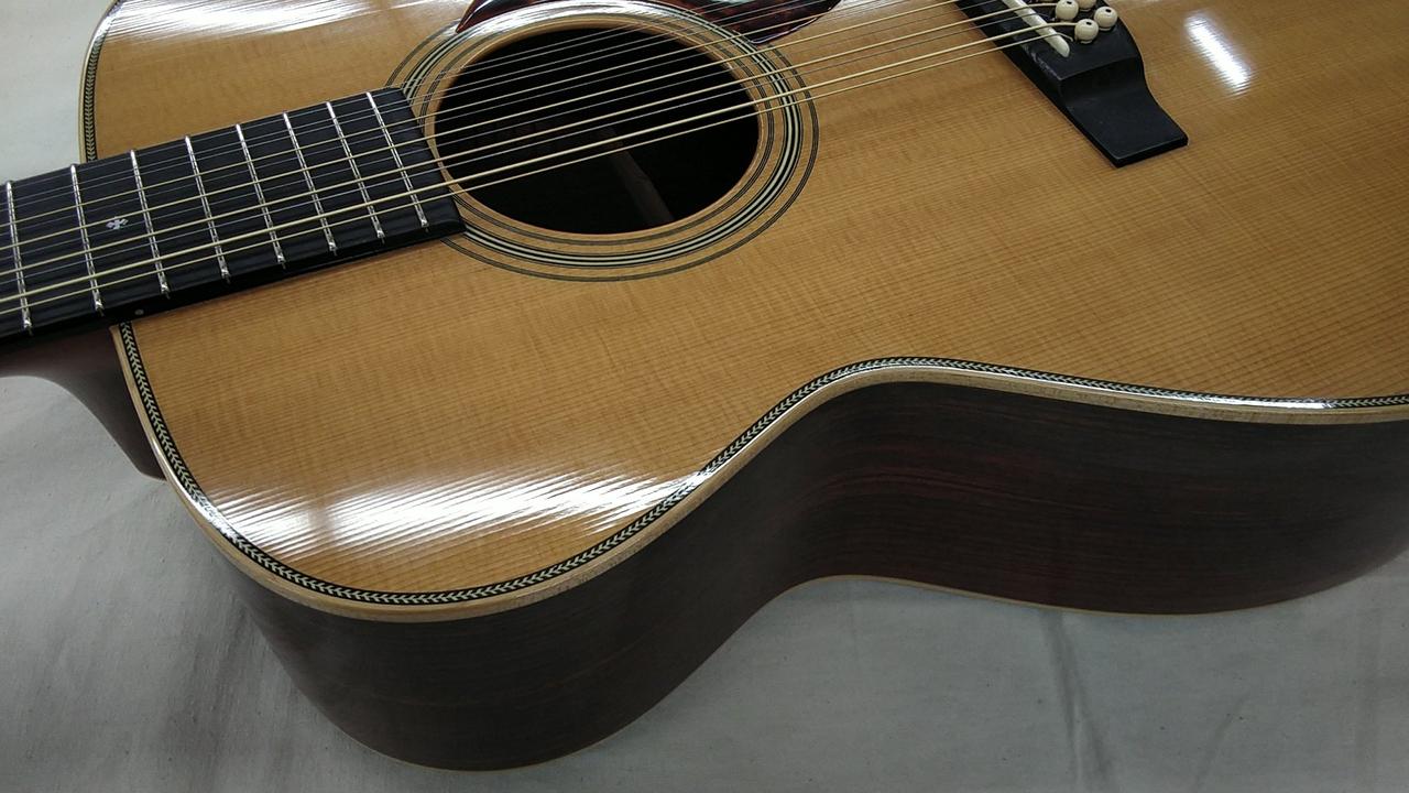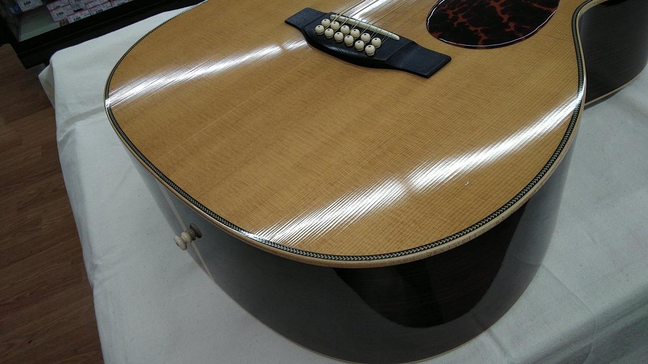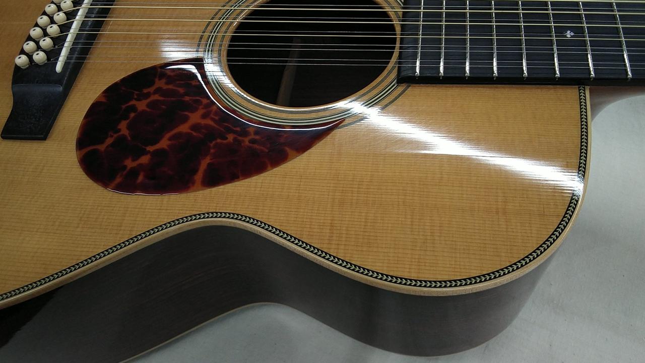 福岡・久留米に工場を構える、クラフトマンの手加工によるこだわり抜かれた完成度が魅力の老舗国産ブランド「アストリアス」。マーティンのOMスタイルをベースに12弦の特別仕様の一本です! |