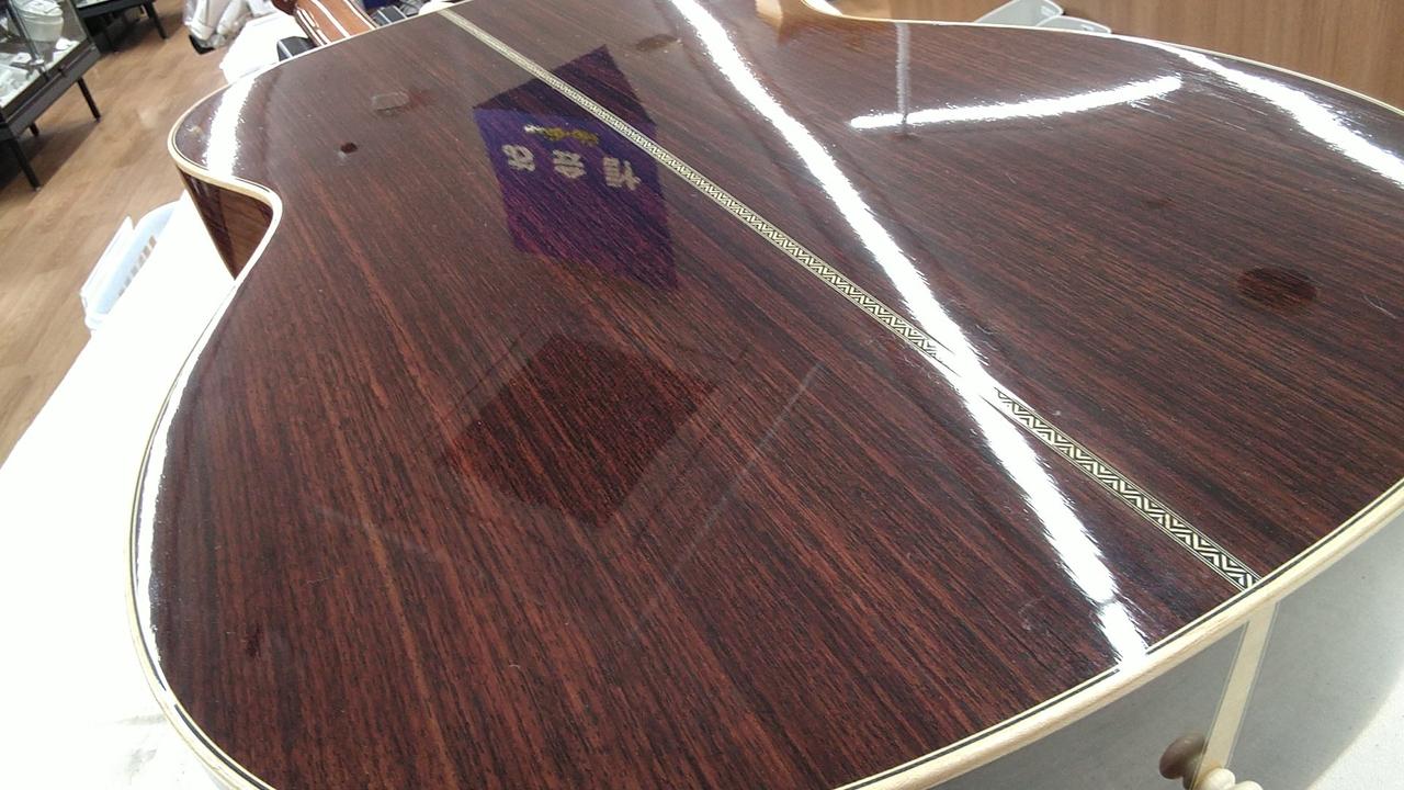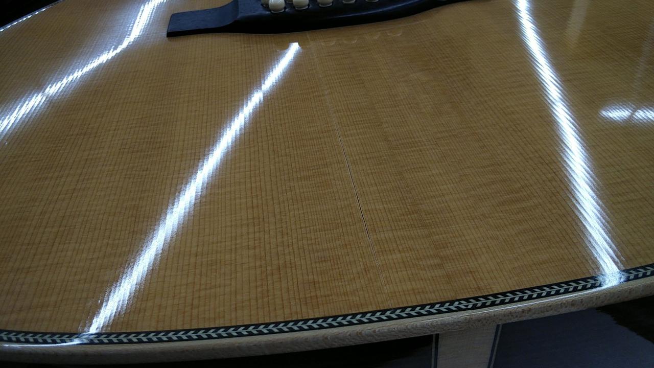 ※トップ板にふくらみあり。弦高12F上6弦約3mm1弦約2.2mm ※ヘッド裏に小さく打痕あり。ピックガードにスレキズ。 |