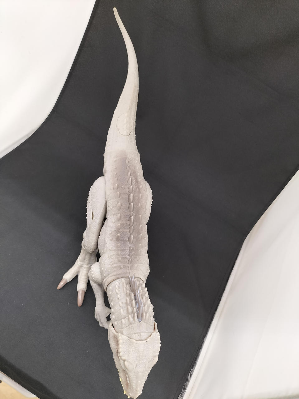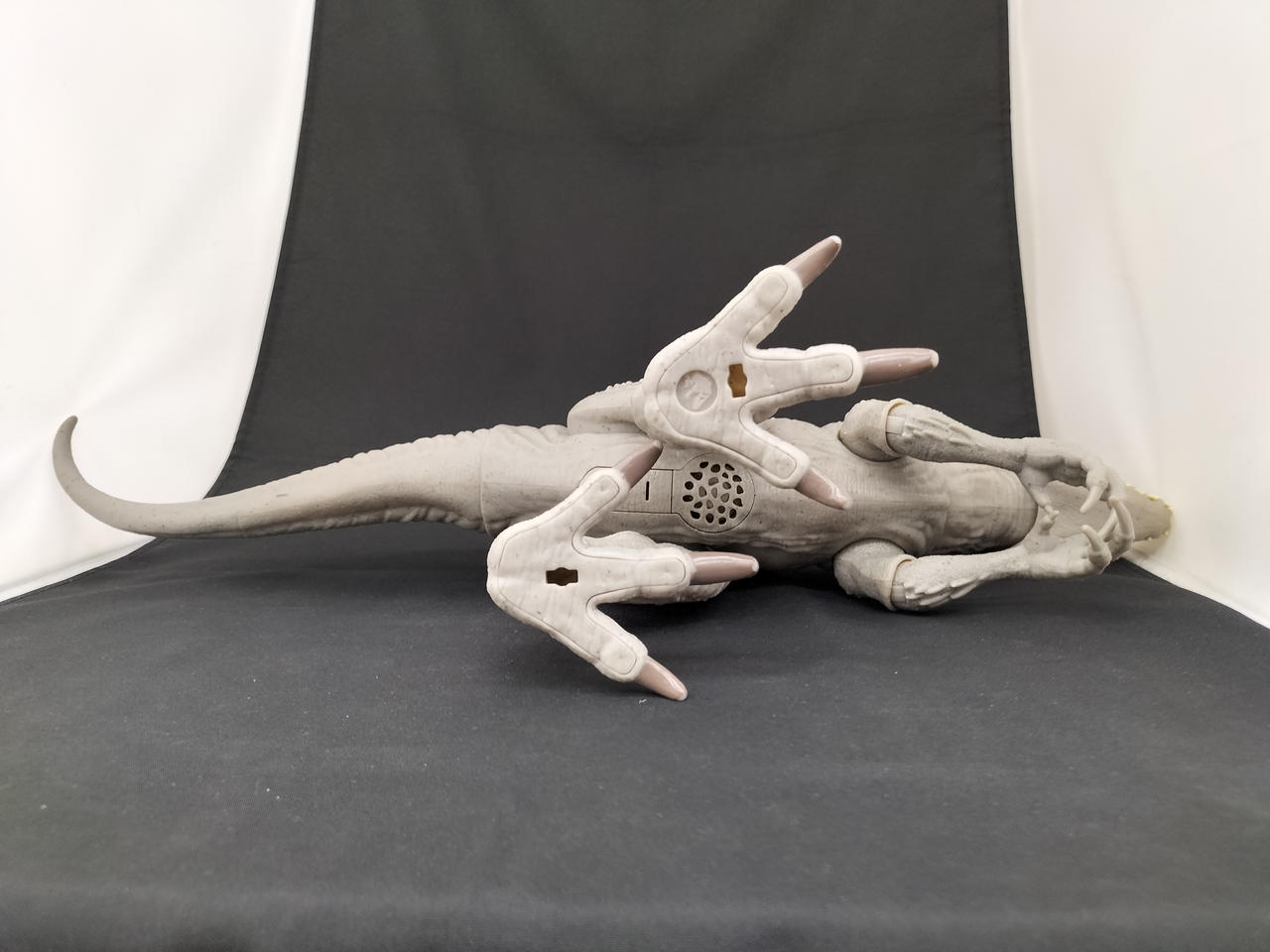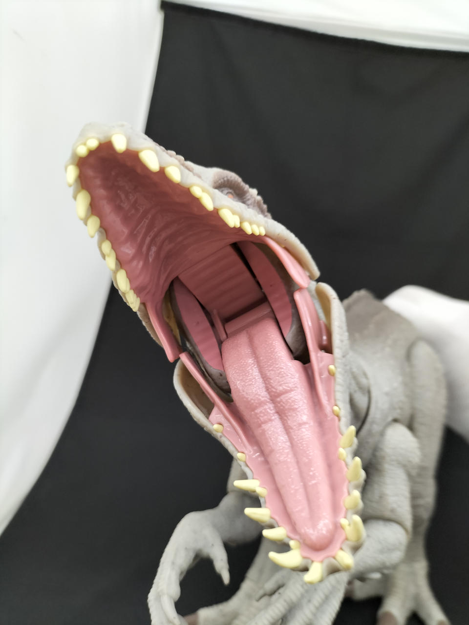 尻尾に連動し顔が可動し、尻尾のボタンを押すと体が光り口を大きく開き吠えます。