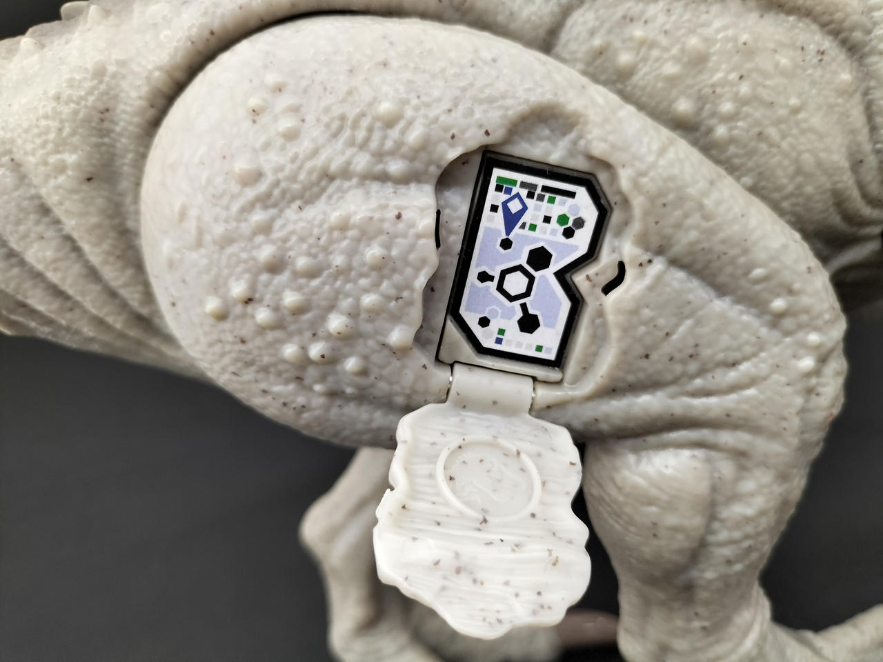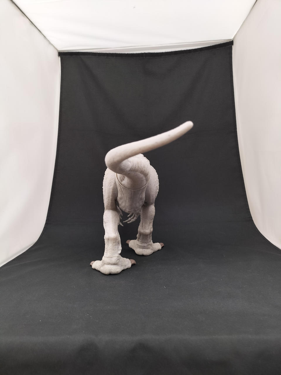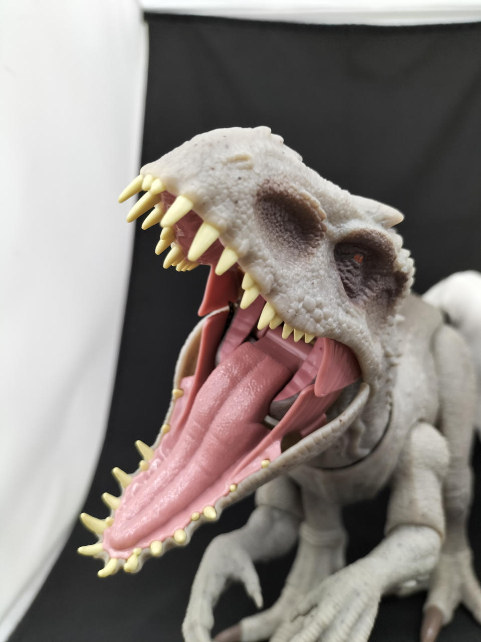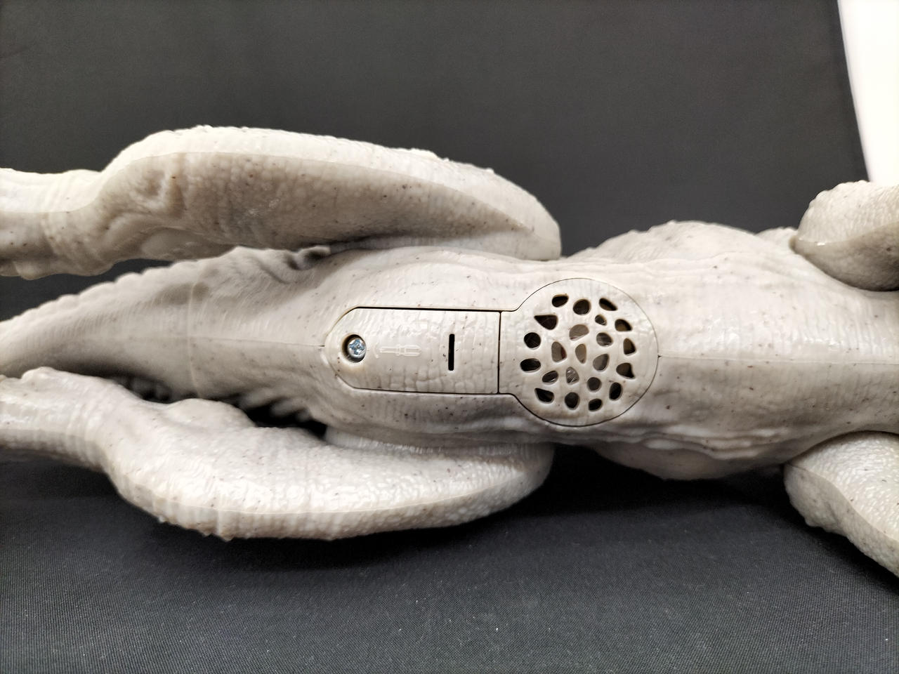 尻尾に連動し顔が可動し、尻尾のボタンを押すと体が光り口を大きく開き吠えます。