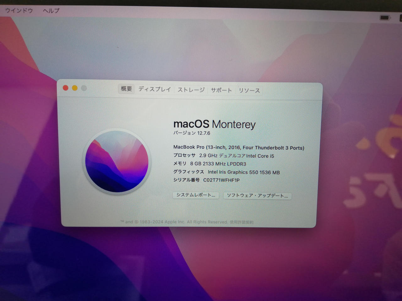 macOS:Monterey 12.7.6 CPU:Intel Core i5@2.9GHz(デュアルコア) |