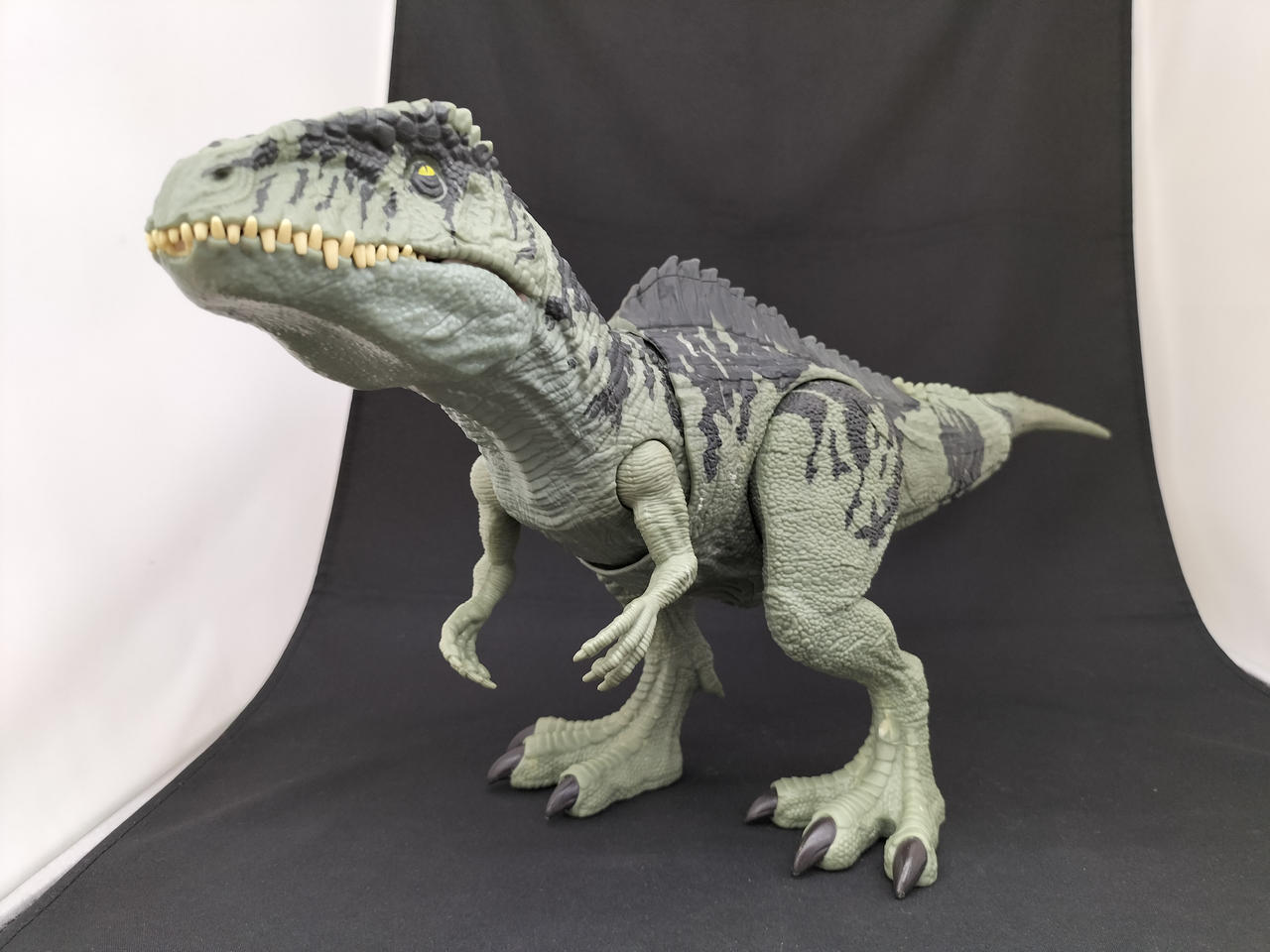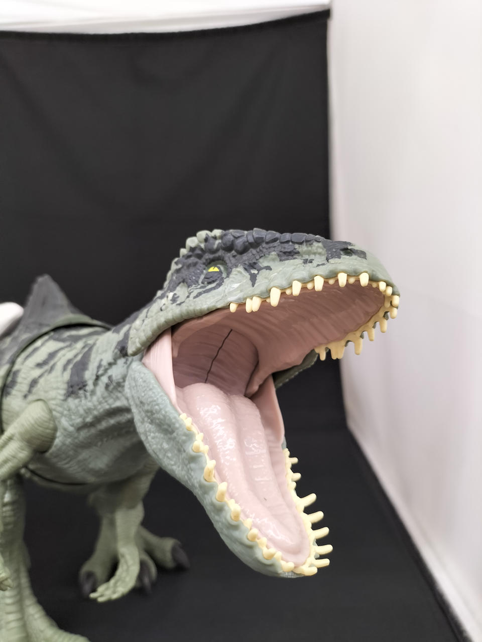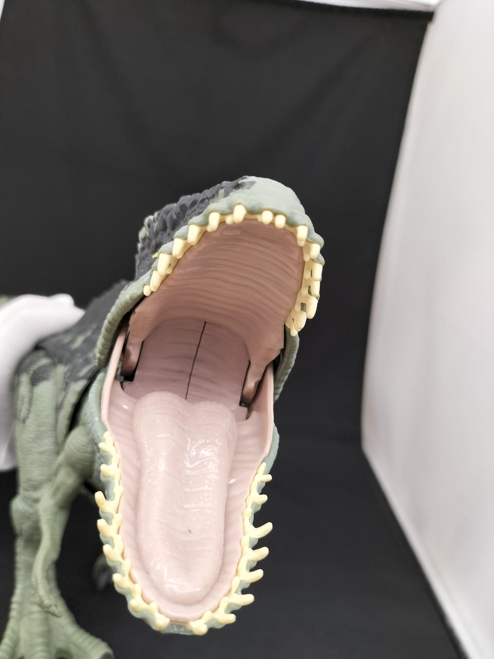 上部ボタンで体を左右に動かし、下部ボタンで大きく口を開き吠えながら噛みつくアクションが可能!