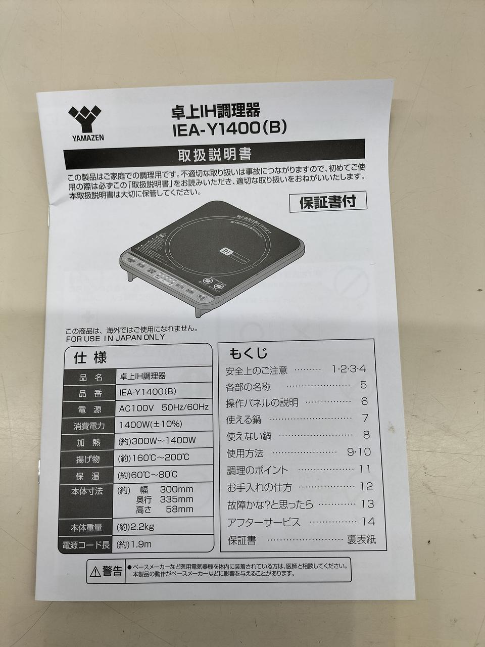 急速加熱1400W、ハイパワー仕様の卓上型IH調理器(1口)梱包材で包み配送させていただきます。 |