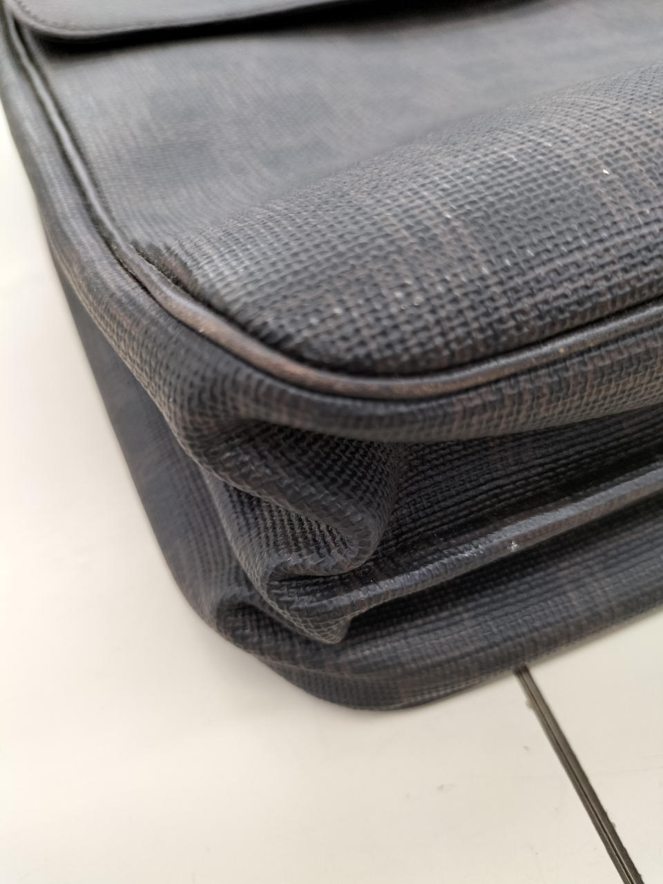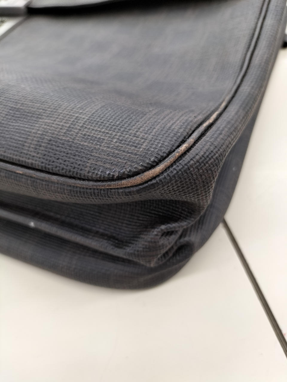 防水性のあるPVCレザーにひかえめにモノグラムを施され、他のマテリアルよりも少しクールで趣な仕上がり |