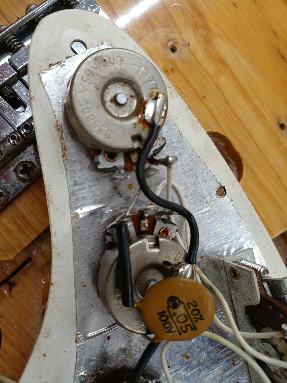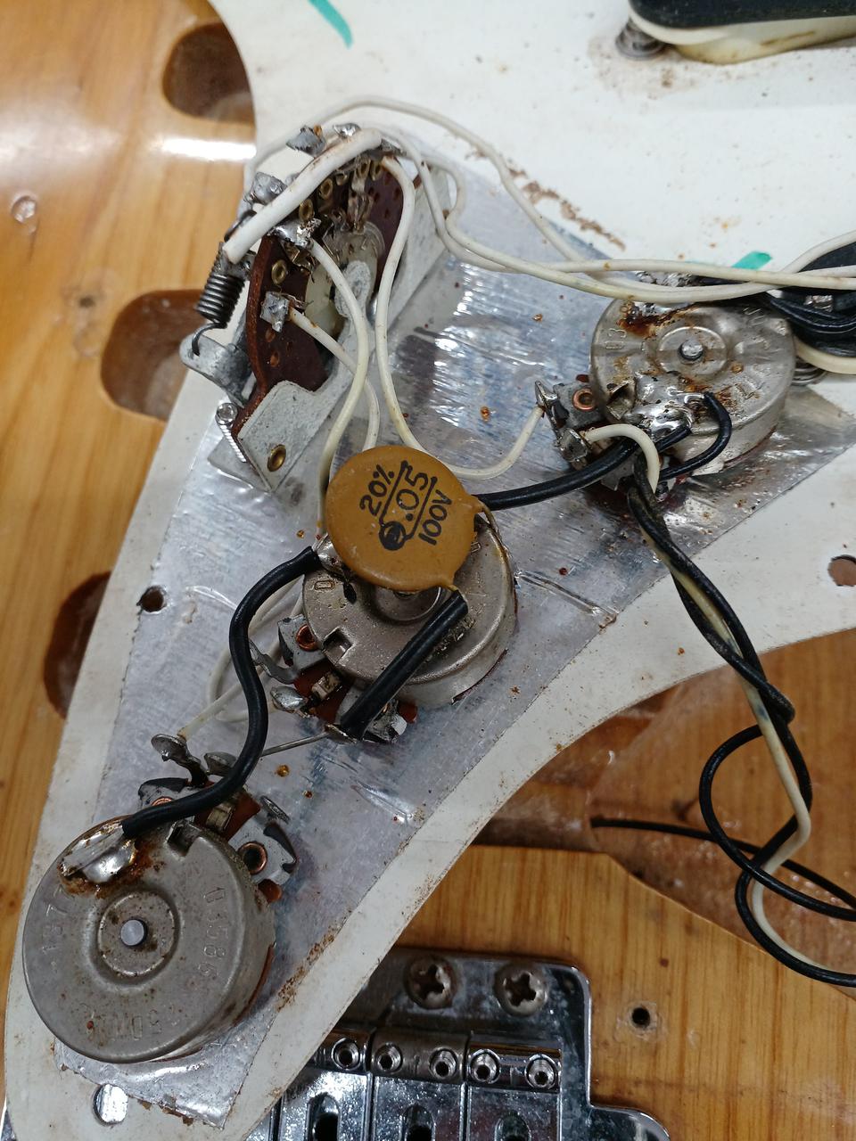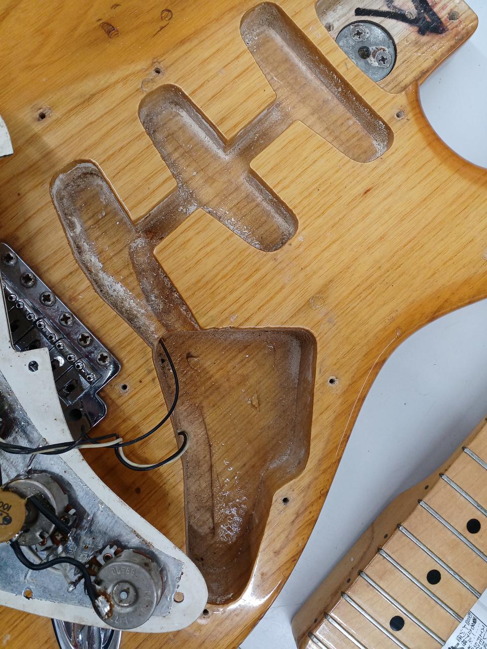 ネックプレートのシリアルは1976年製になりますがポットデイトが1977年製であることやピックアップのがオリジナルと異なるため1976年製モディファイ品となります |