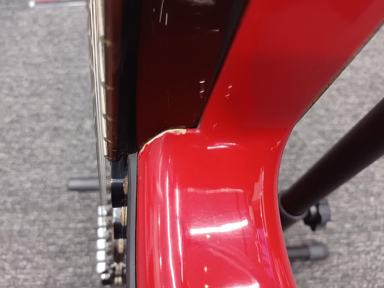 テンションバー欠品の為1,2弦で共鳴あり。テープ等でミュートやテンションバーをご利用ください。 |