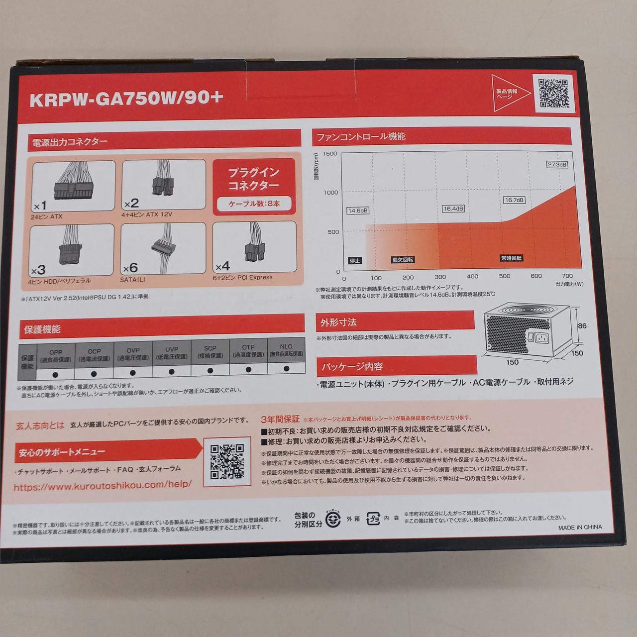 ATX電源ユニット フルプラグイン仕様 750W |